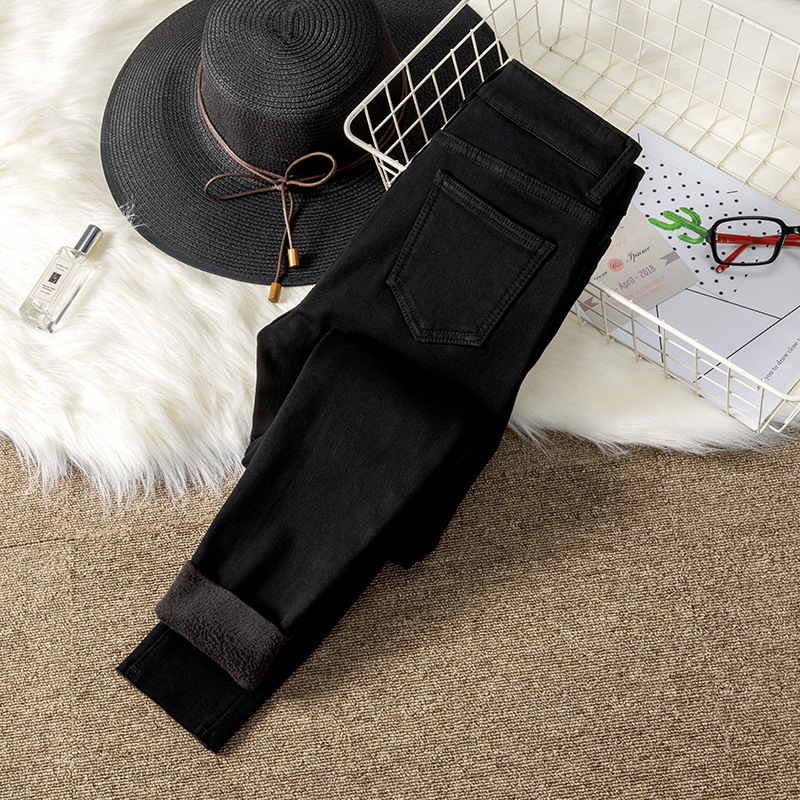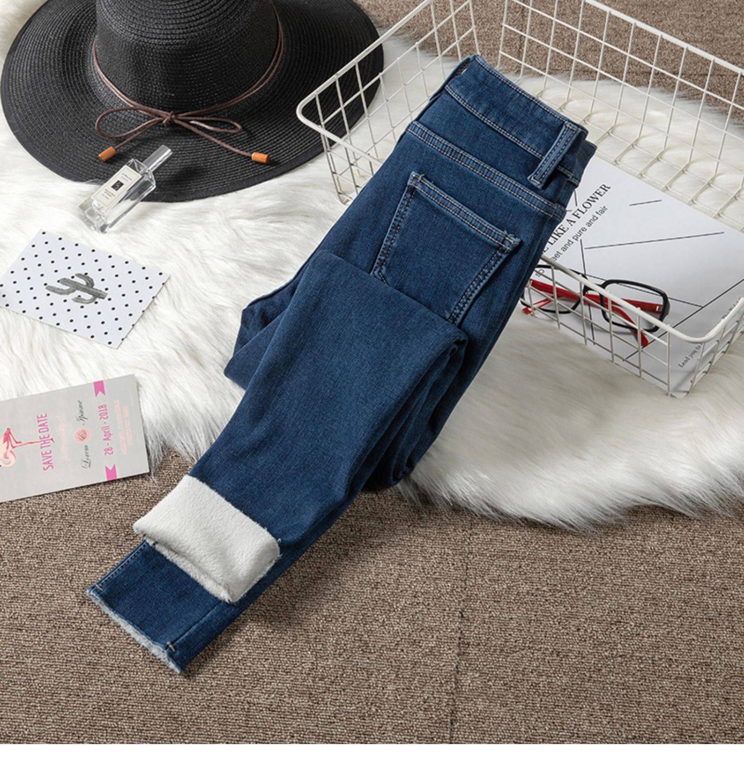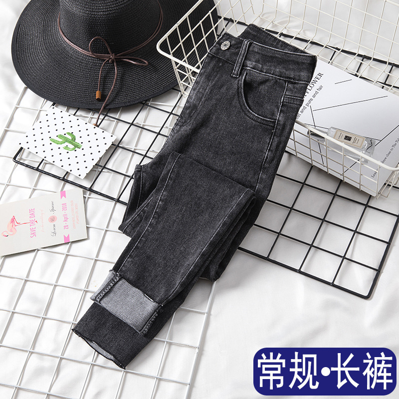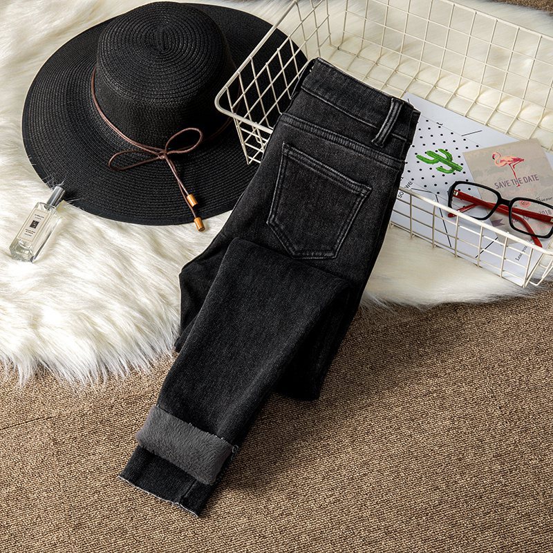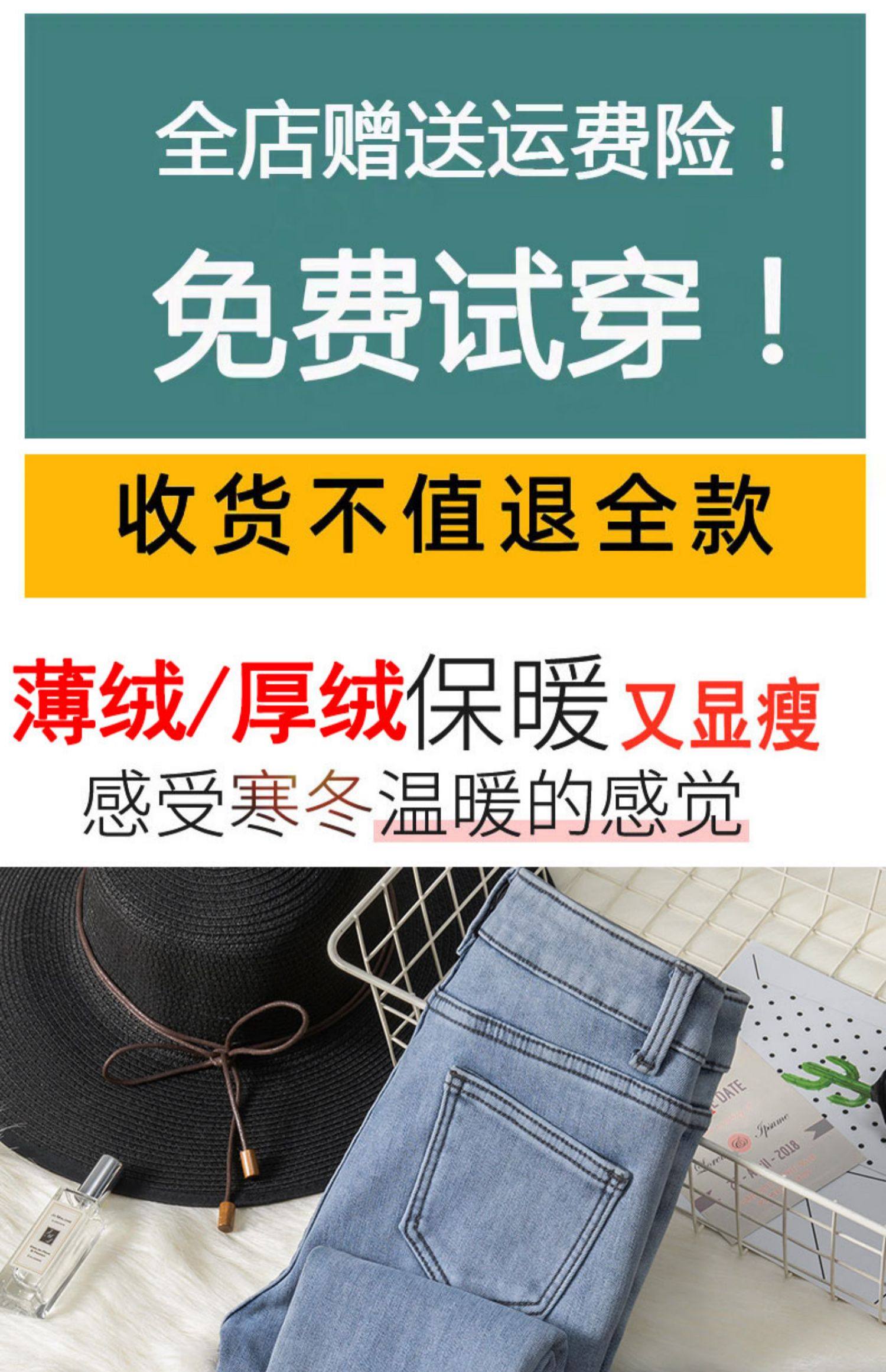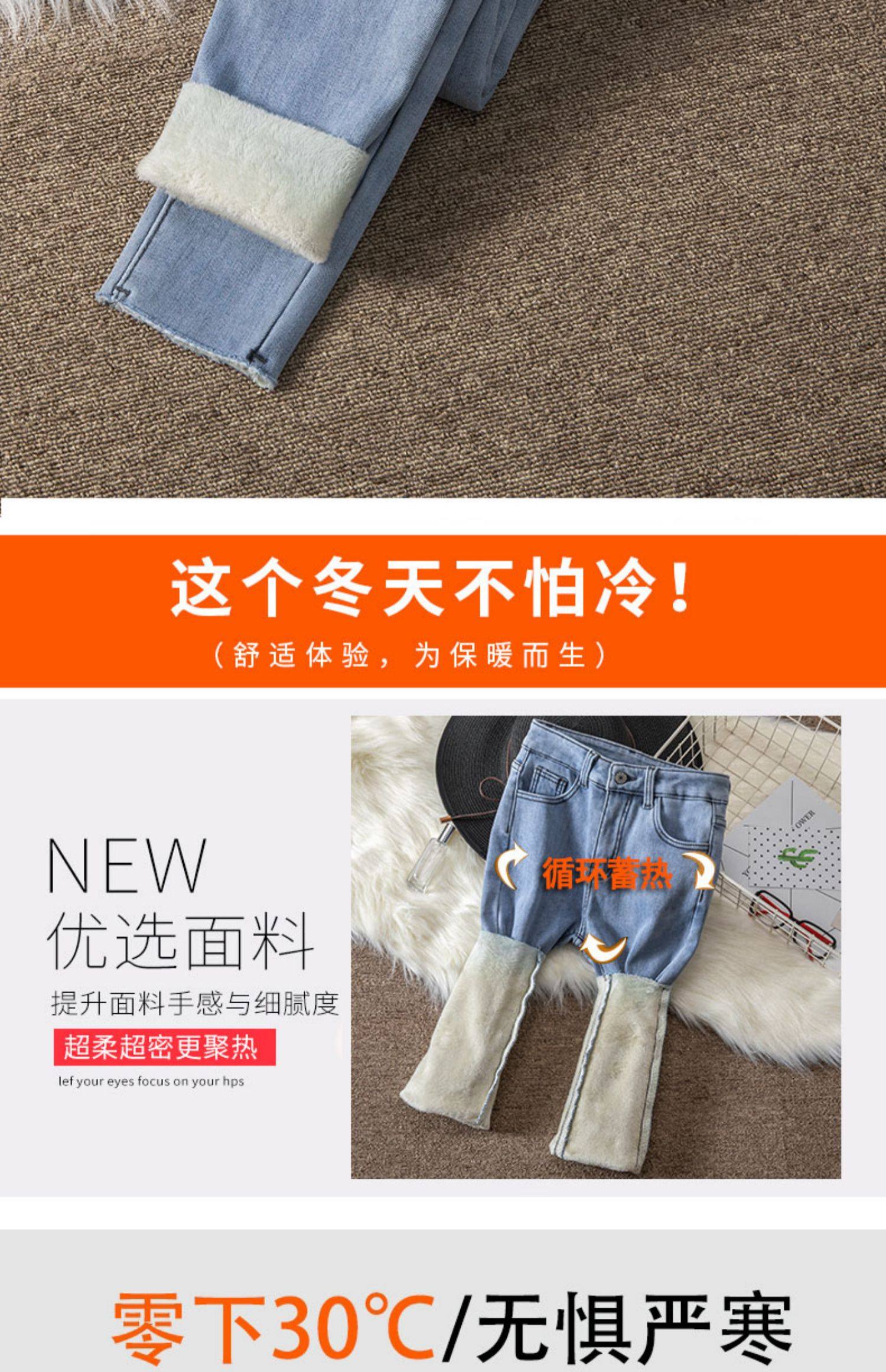 가벼운 색상 두꺼운 기모 청바지 여자의 겨울 2023 새로운 스타일 겉옷 슬리밍 하이 웨이스트 얇은 벨벳 작은 바지스토어 가기