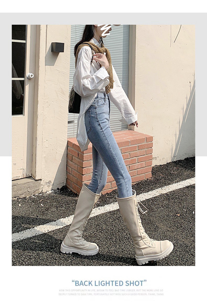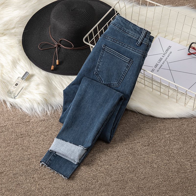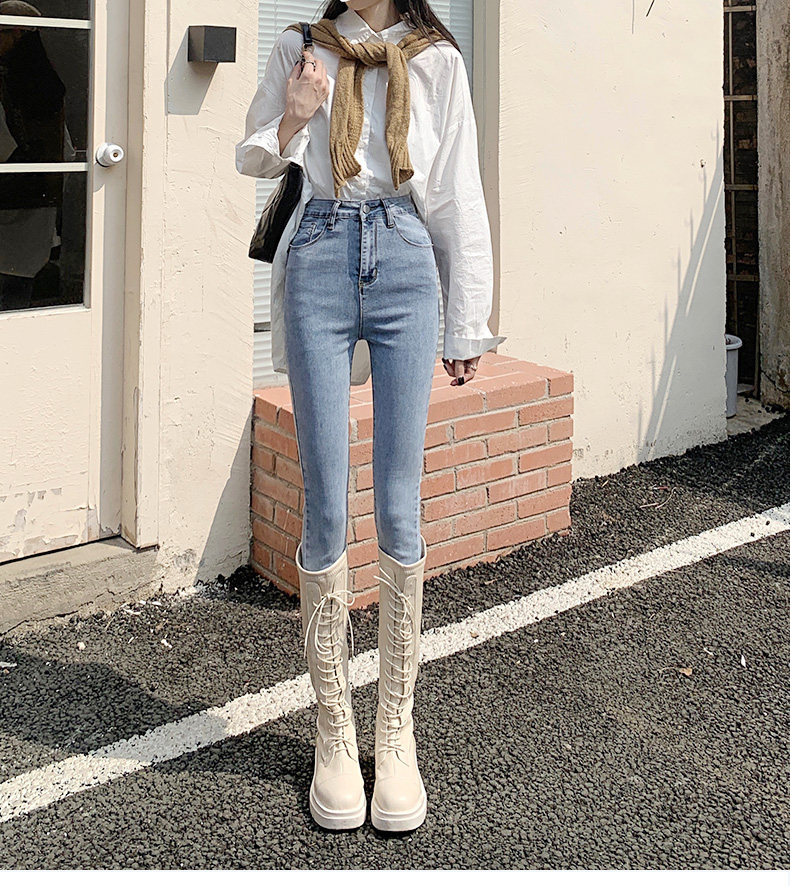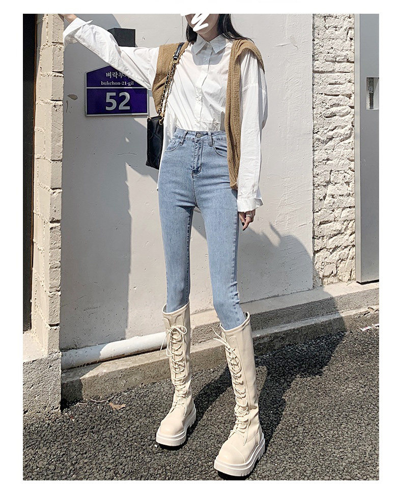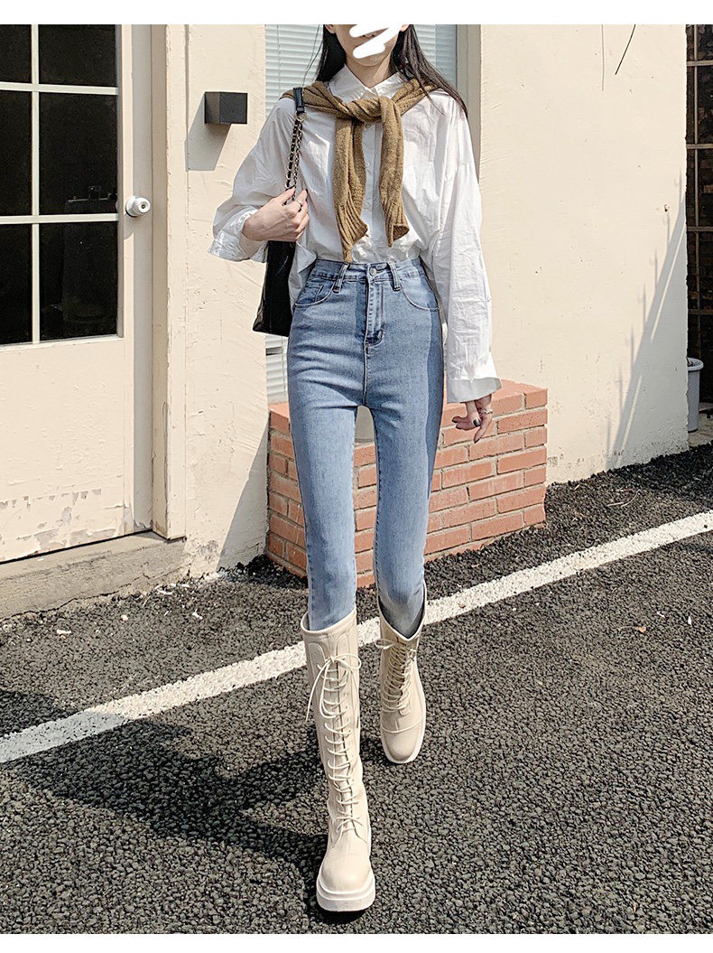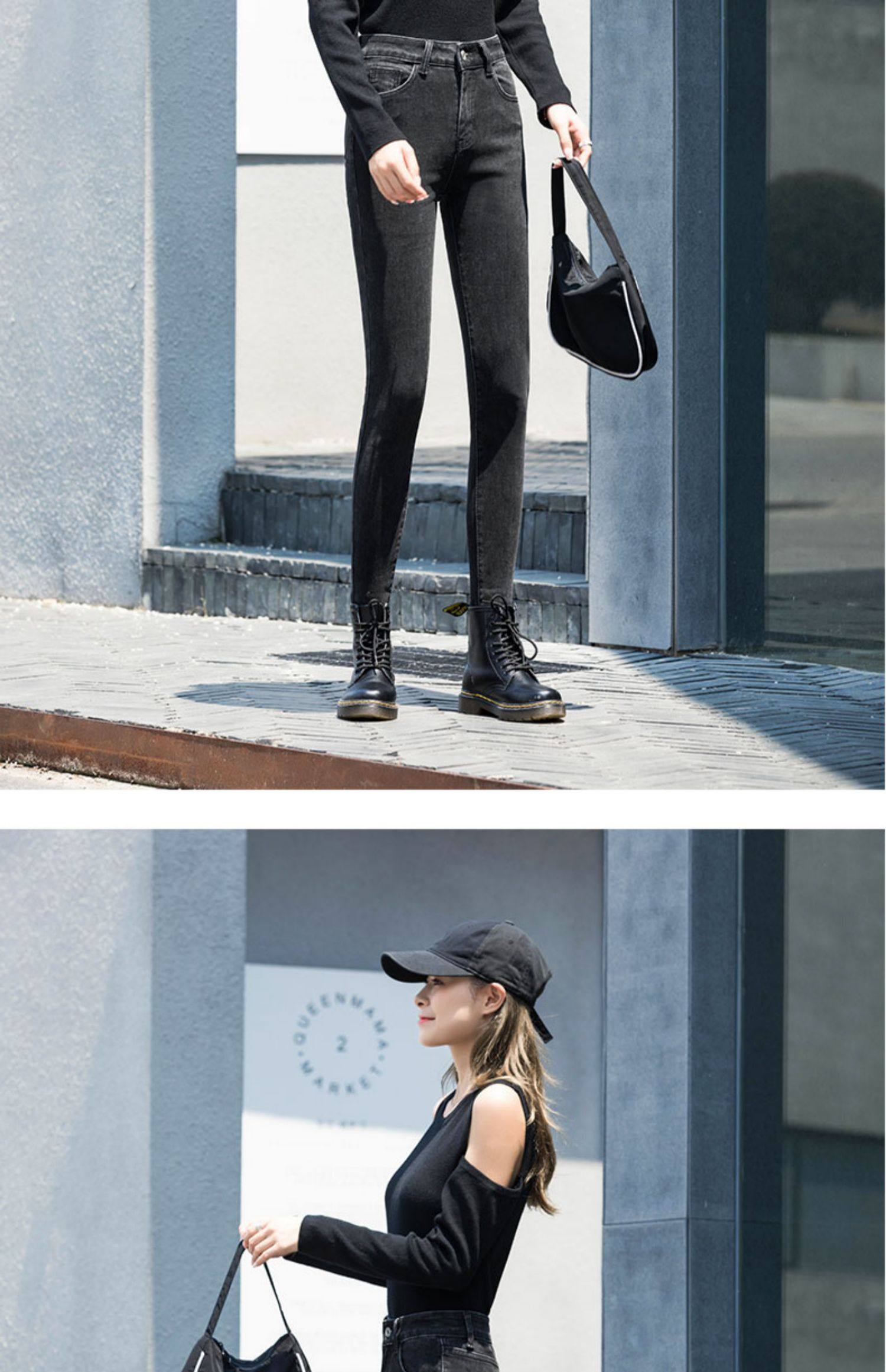 가벼운 색상 두꺼운 기모 청바지 여자의 겨울 2023 새로운 스타일 겉옷 슬리밍 하이 웨이스트 얇은 벨벳 작은 바지스토어 가기