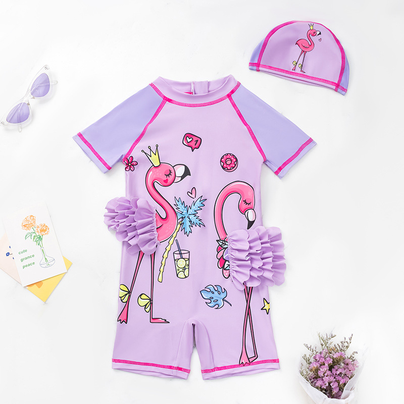 2023 새로운 어린이 소녀의 귀여운 수영복 결합 플라밍고 짧은 수영복 해변 놀이 수영복스토어 가기