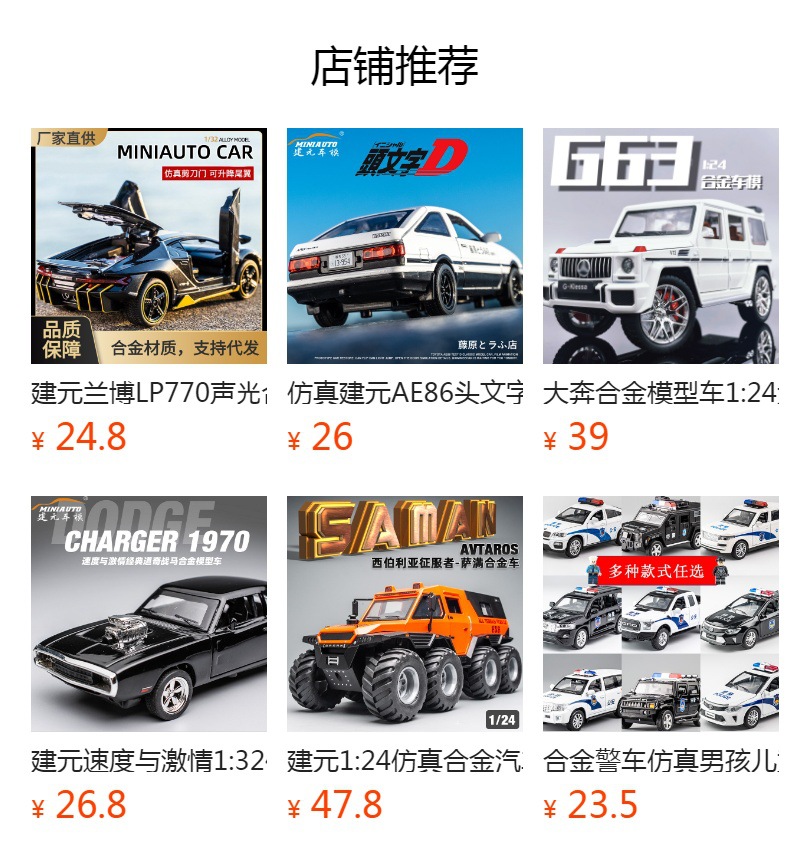 【产品介绍】合金车身/车底塑料/橡胶轮胎 ;带减震,两车门可开,前引擎盖及后备箱可开,带灯光声效;无回力功能