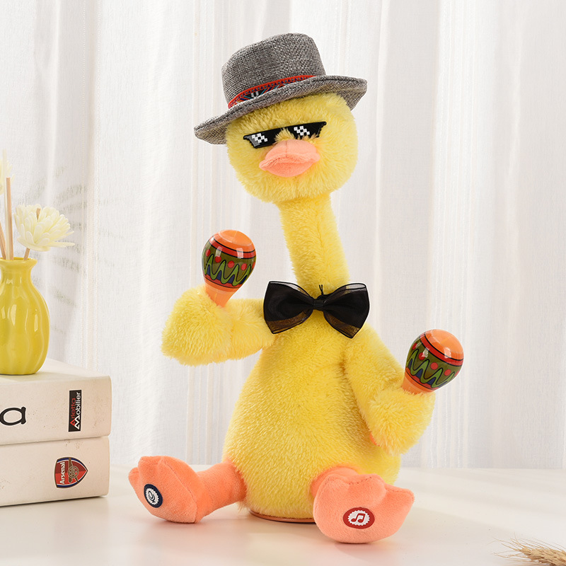 봉제 전기 장난감은 노래하고 혀 녹음을 배울 수 있습니다 춤추는 오리 밴드 그물 빨간 흔들리는 모래 조각 장난감스토어 가기