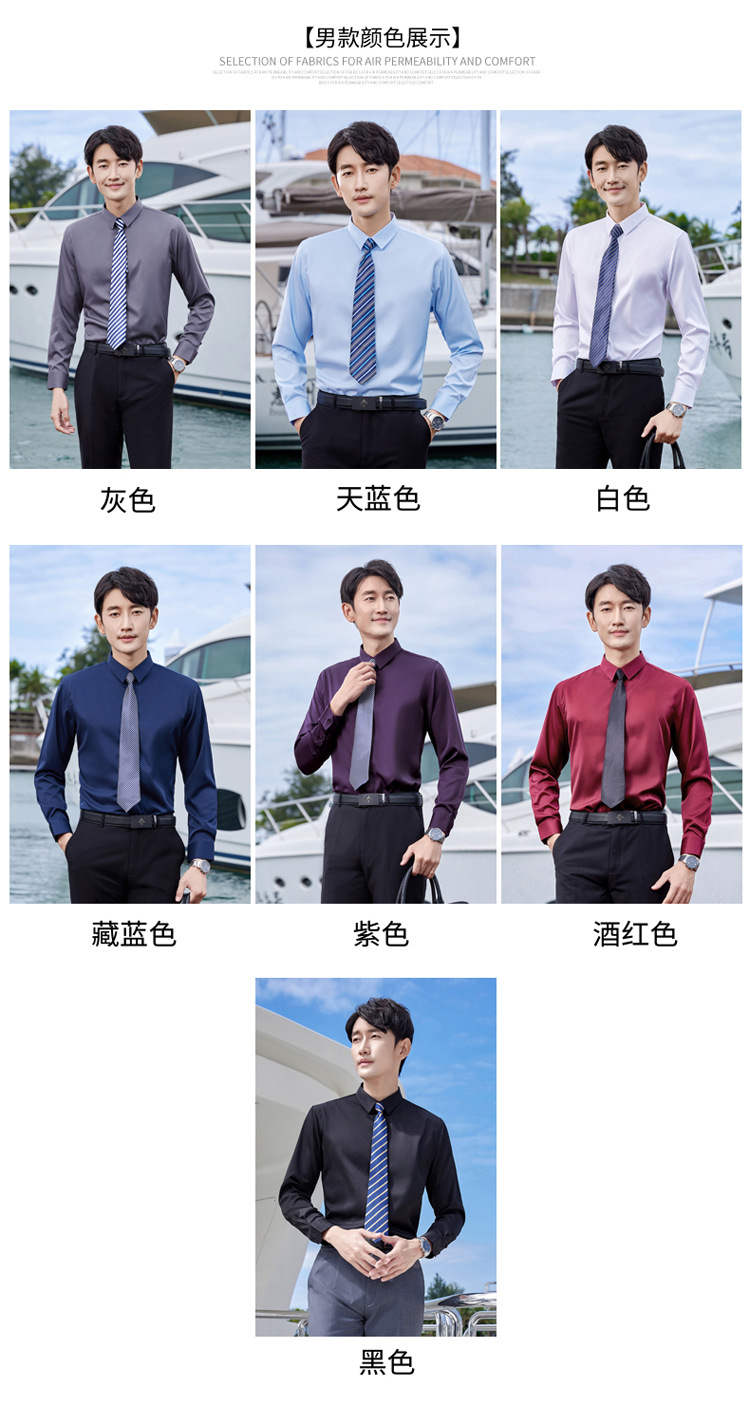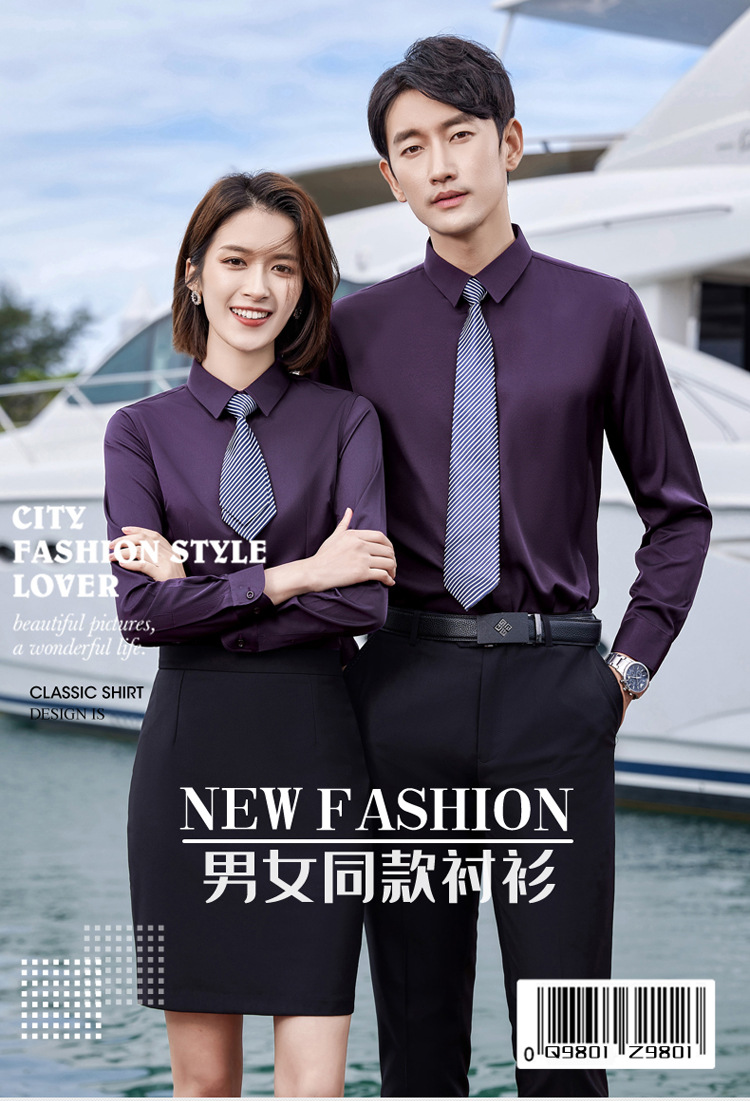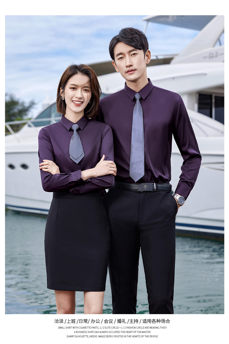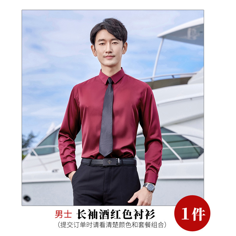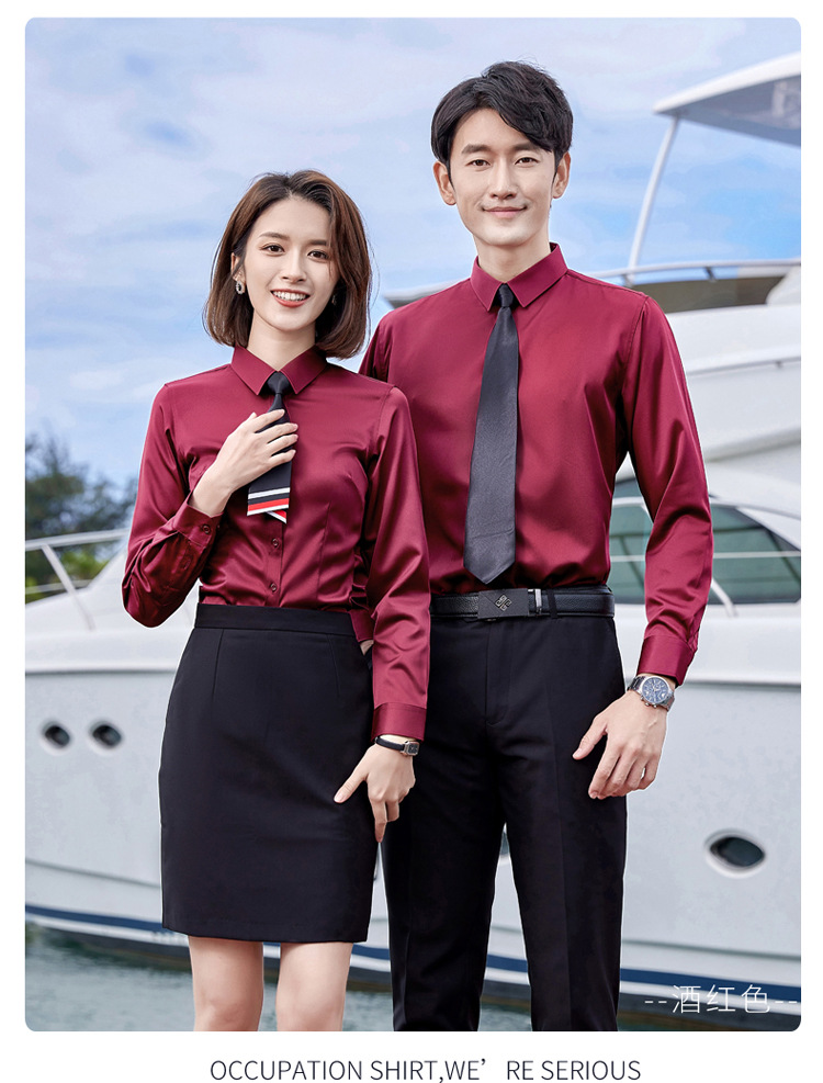 버건디 남자와 여자의 긴 소매 셔츠 약간 탄성 비 다림질 호텔 작업 옷 남자와 여자의 비즈니스 옷 셔츠 수 놓은 로고