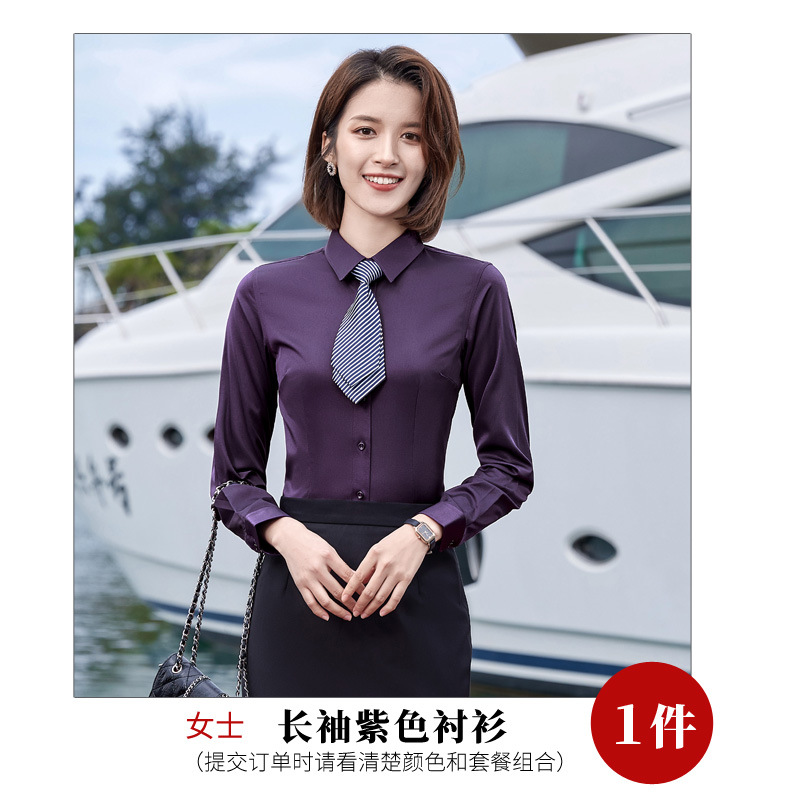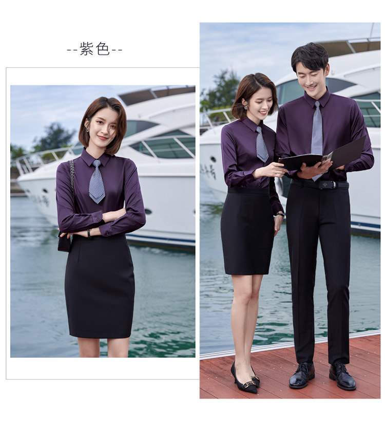 버건디 남자와 여자의 긴 소매 셔츠 약간 탄성 비 다림질 호텔 작업 옷 남자와 여자의 비즈니스 옷 셔츠 수 놓은 로고스토어 가기
