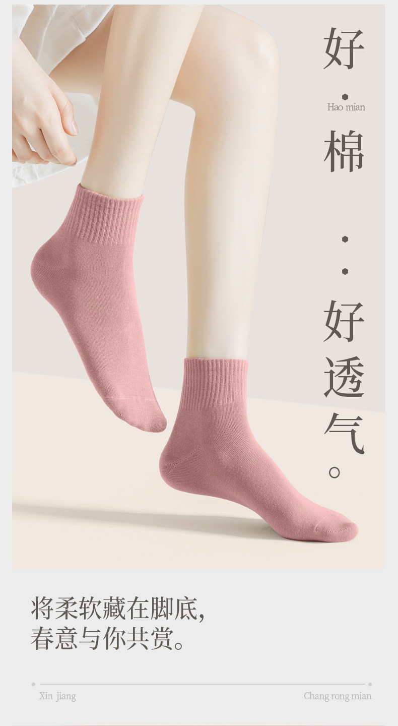 면 새로운 말면 양말 숙녀 단색 봄과 가을 짧은 튜브 캐주얼 통기성 땀 흡수 양말 Zhuji 양말 도매스토어 가기