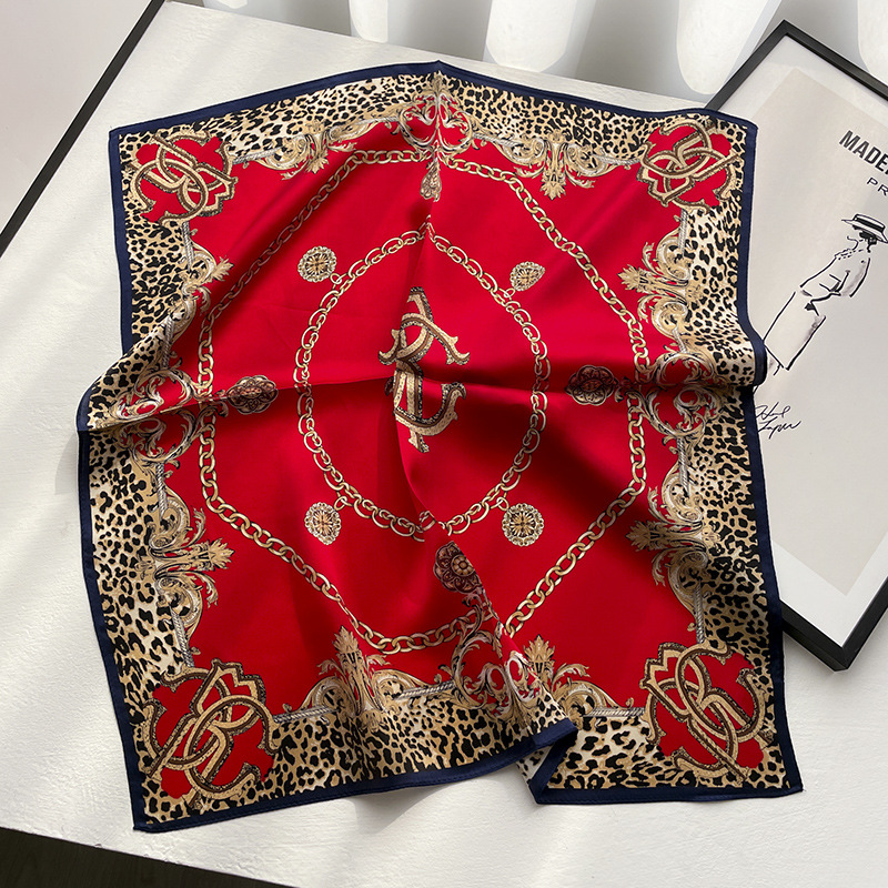 실크 뽕나무 실크 레드 레오파드 무늬 53cm 작은 사각 스카프 여성의 봄 가을과 겨울 얇은 스카프 매칭 세트 셔츠스토어 가기