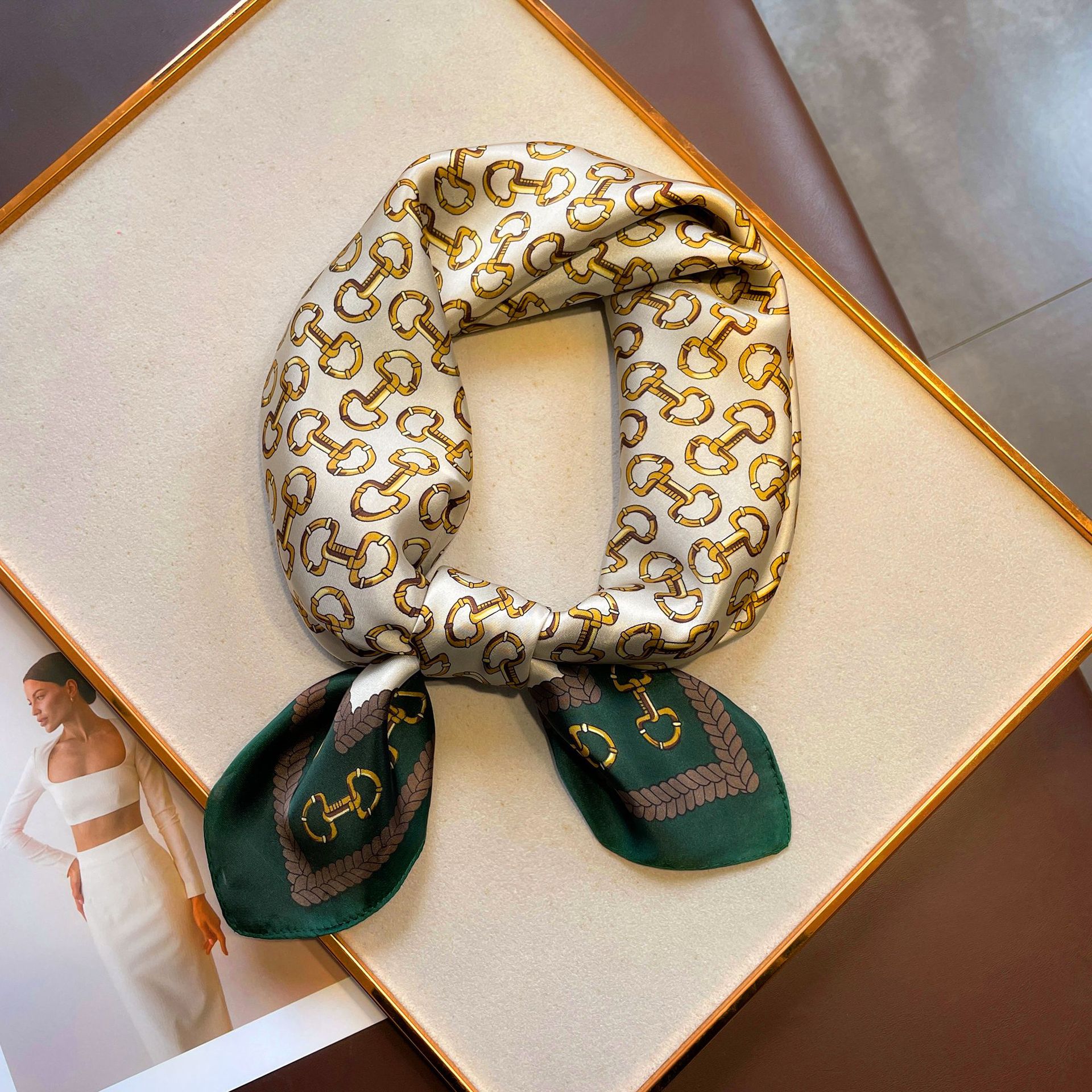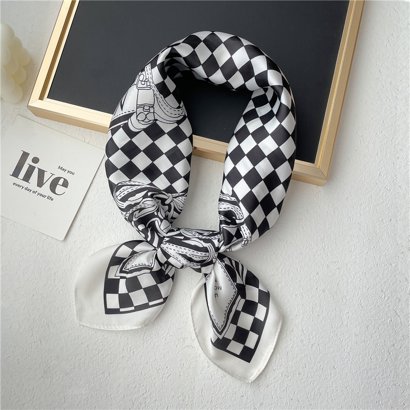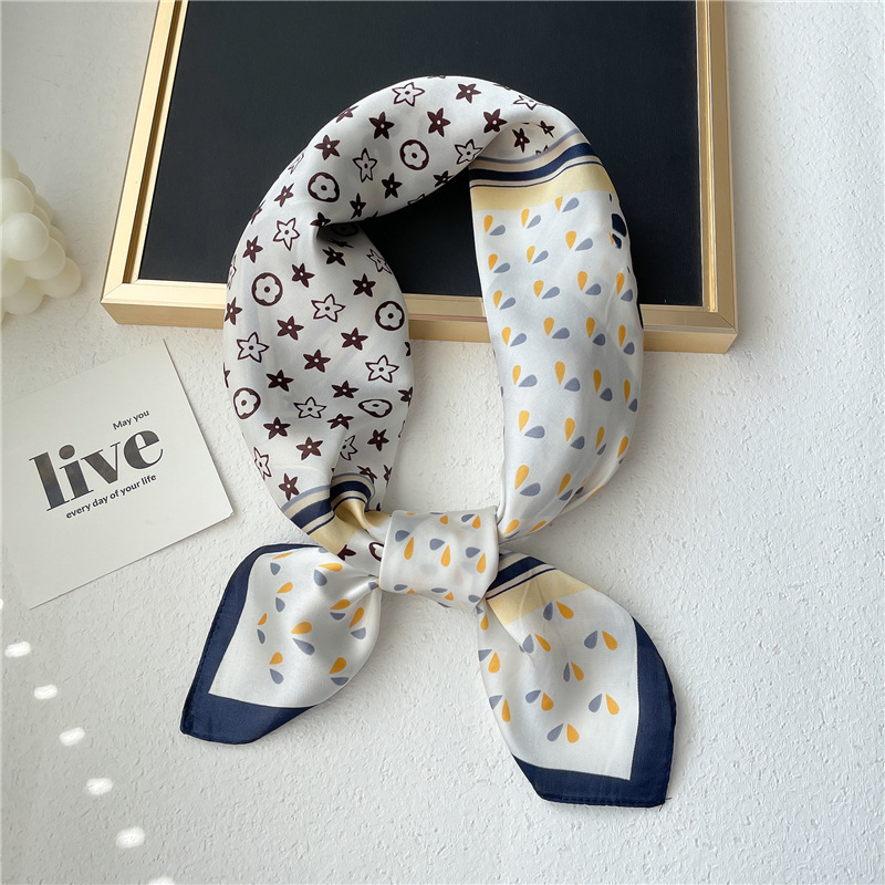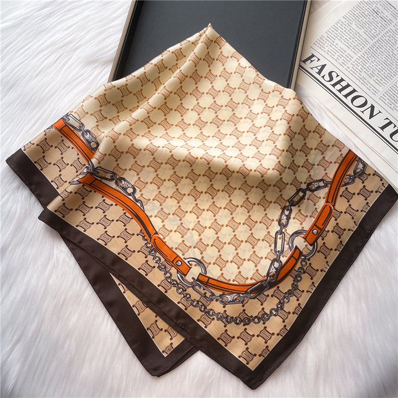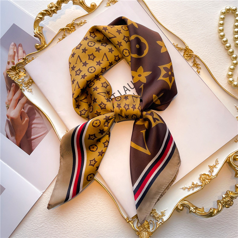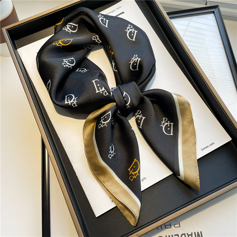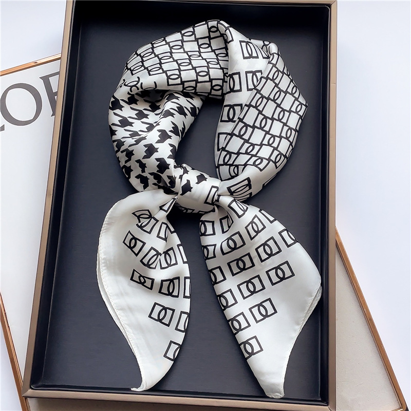 간단한 편지 스카프 모조 실크 스퀘어 70cm 모든 매치 봄과 여름 자외선 차단제 스카프 작은 숄 타이 백 넥타이 실크 스카프