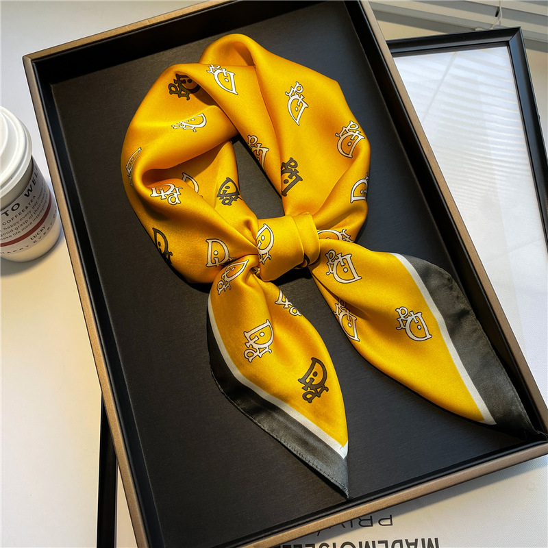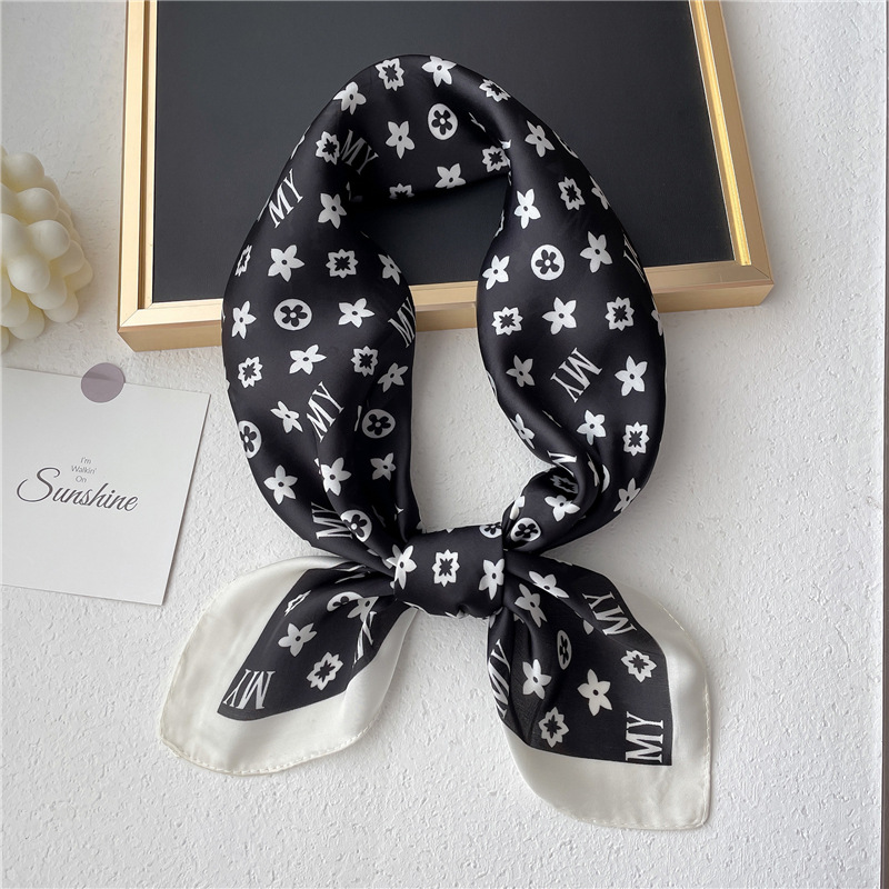 간단한 편지 스카프 모조 실크 스퀘어 70cm 모든 매치 봄과 여름 자외선 차단제 스카프 작은 숄 타이 백 넥타이 실크 스카프스토어 가기
