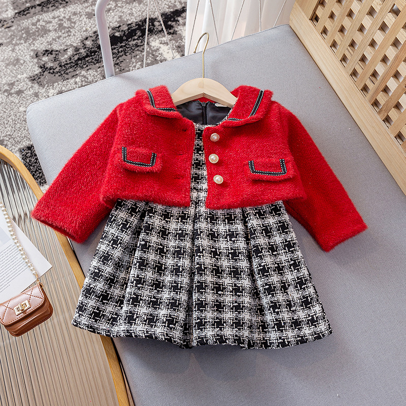 여자 겨울 2023 새로운 가을과 겨울 공주 어린이 치마 서양 스타일 작은 향기 원피스 투피스 세트 겨울 치마스토어 가기