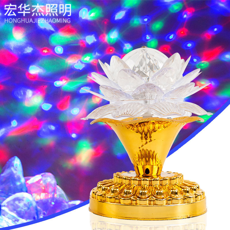 판타지 다채로운 led 무대 램프 크리스마스 파티 분위기 크리스탈 로터스 턴 볼 램프 장식 프로젝션 램프스토어 가기