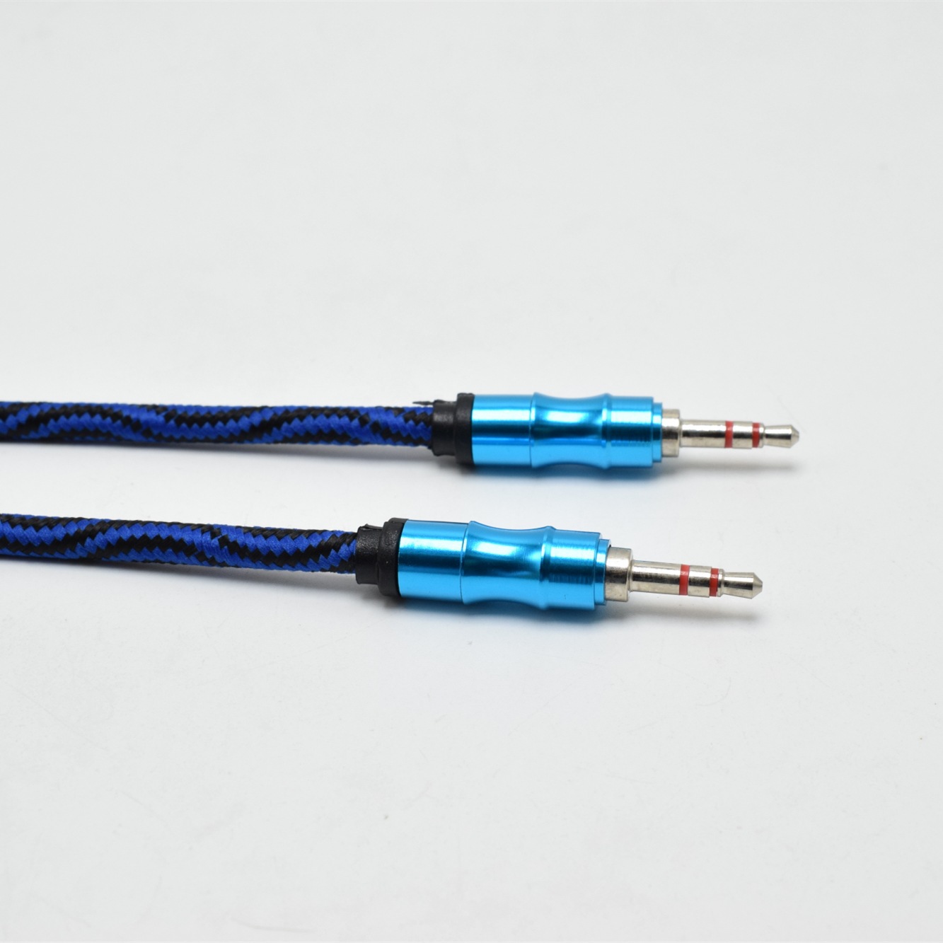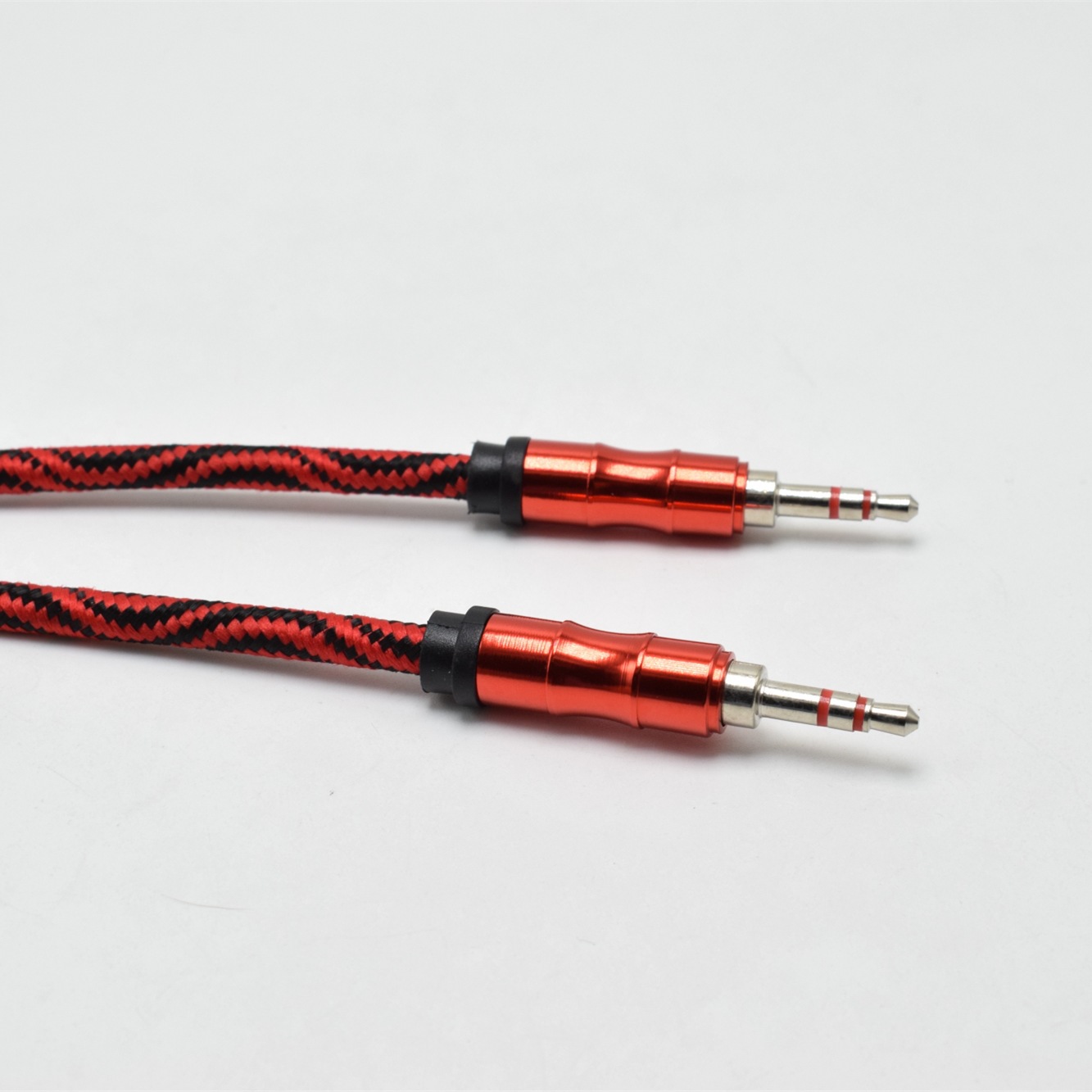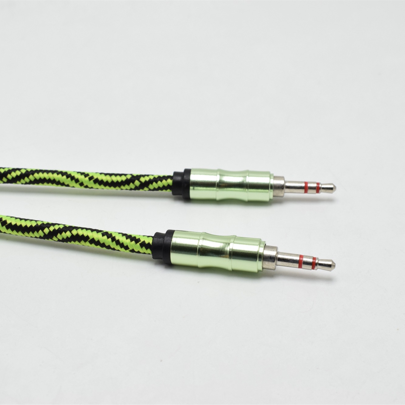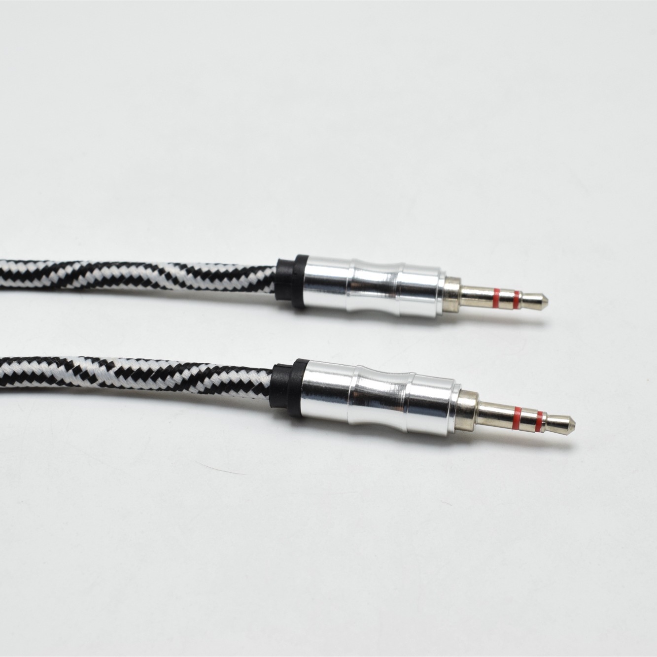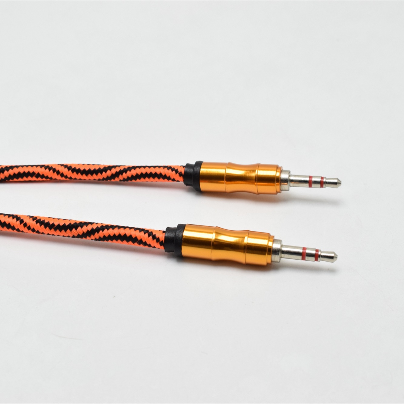 【产品材料】:棉布编织线身,金色金属壳,镀镍35对35AUX插头【线材规格】:长度150cm线径0D4.5mm 【芯线规格】:3芯线24根镀锡铜丝 【产品接口】:三极35对35AUX