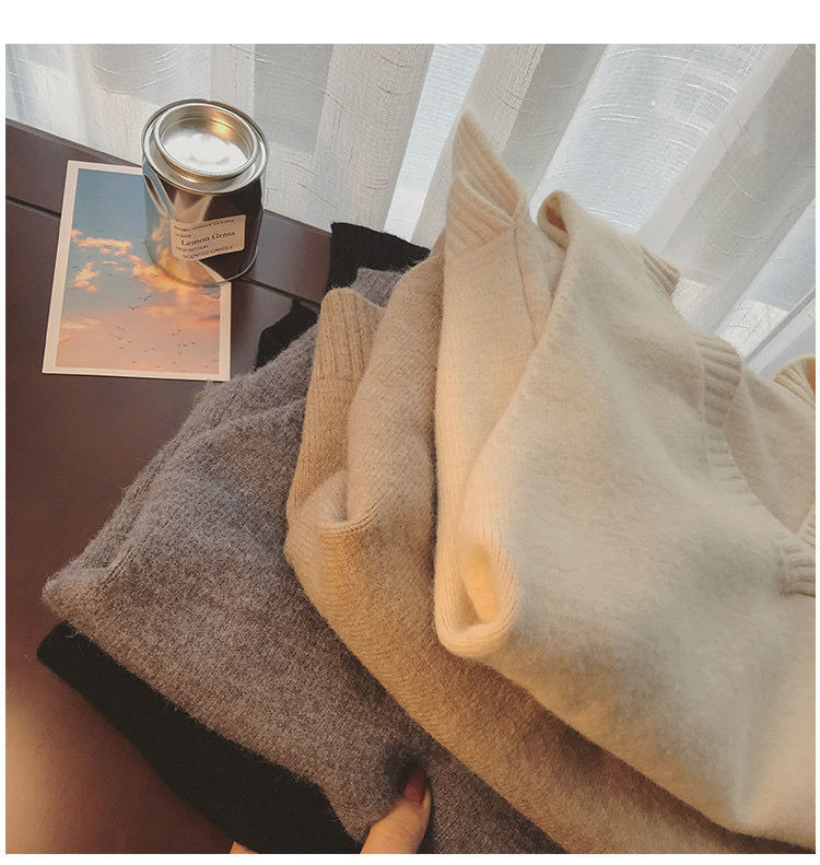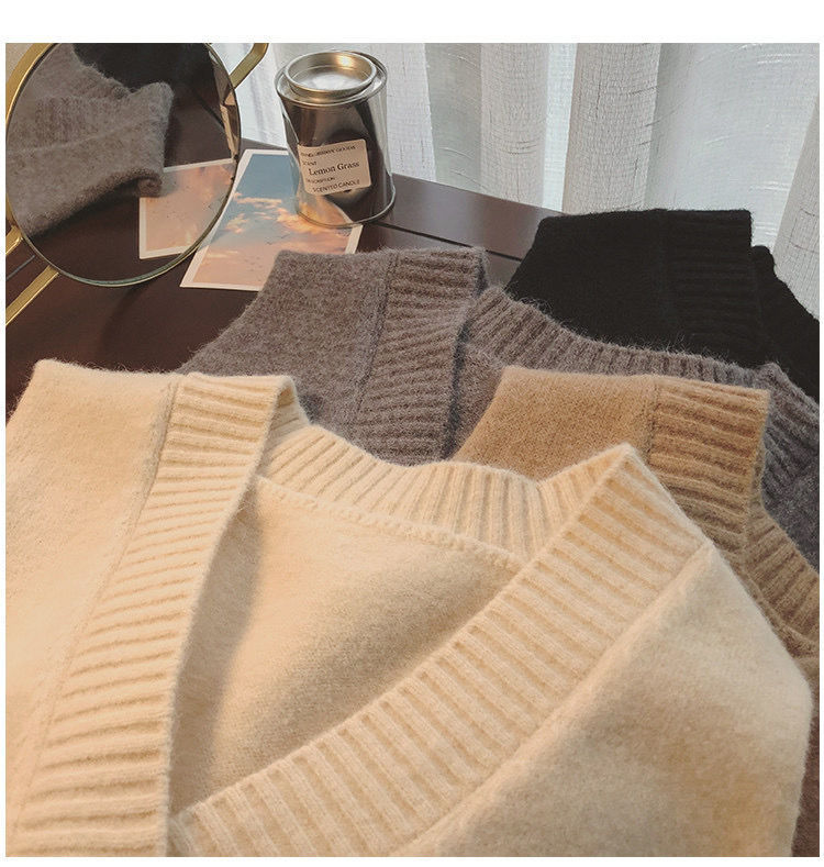 V-넥 스웨터 조끼 여성용 한국식 민소매 니트 조끼 심플한 대학 스타일의 루즈한 아웃웨어 트렌디 한 말 클립스토어 가기