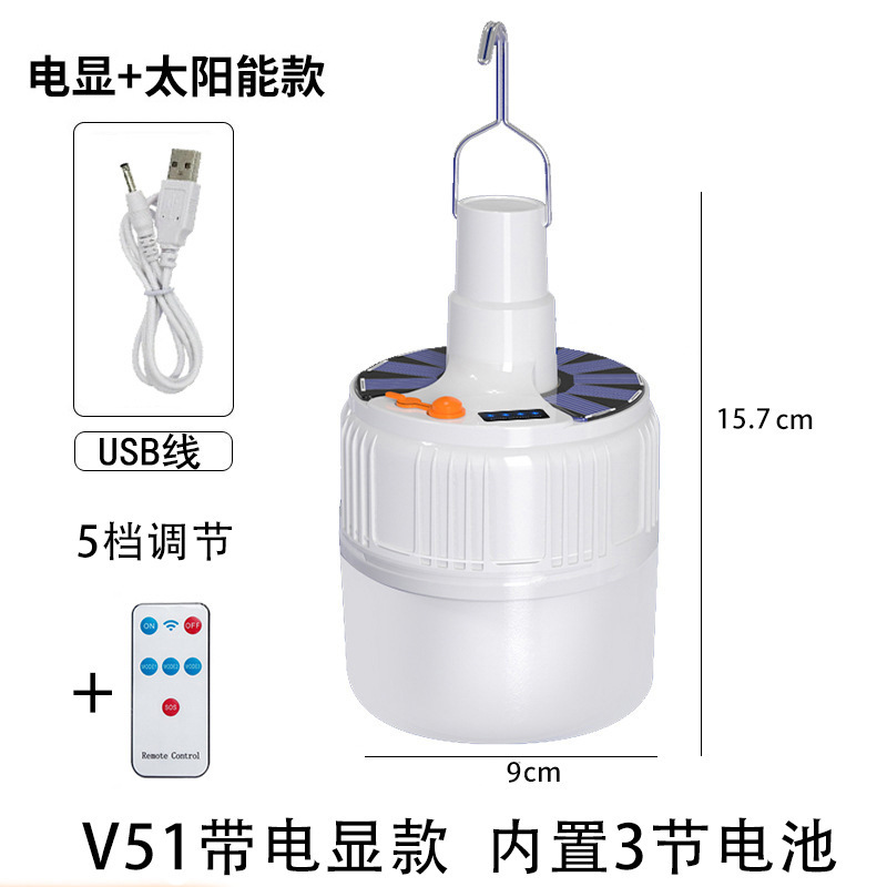 국경 간 태양 충전 led 전구 전구 전구 조명 홈 모바일 야간 시장 마구간 캠핑 원격 제어 조명