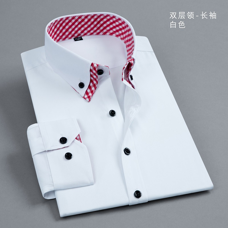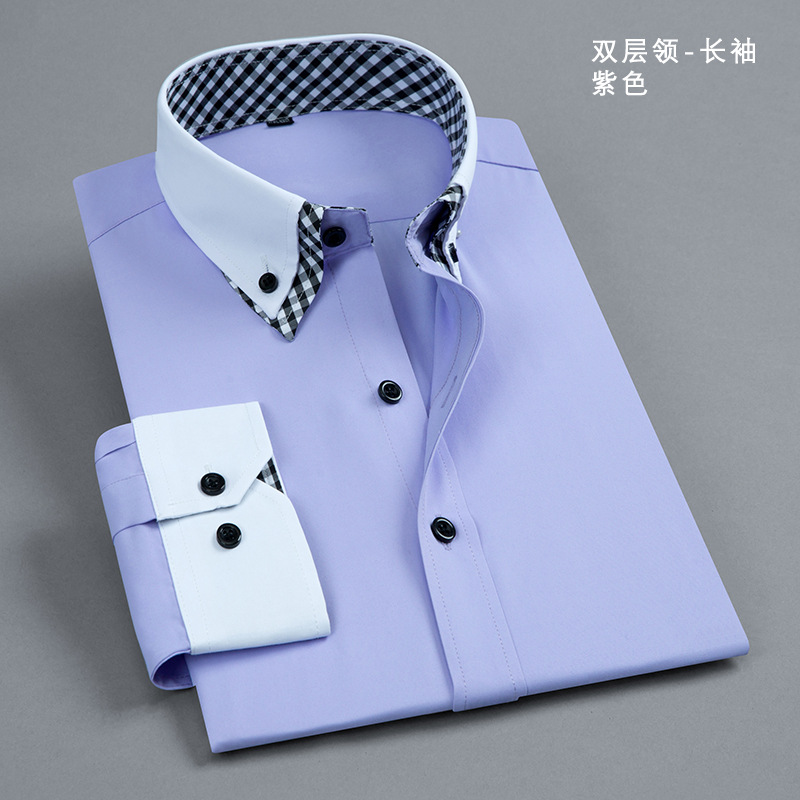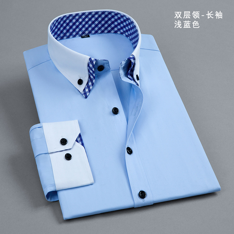 더블 칼라 컬러 블록 셔츠 남성용 긴팔 청소년 캐주얼 일반 셔츠 스타일 먼지 방지 격자 무늬 대비 블랙 버튼 남성복