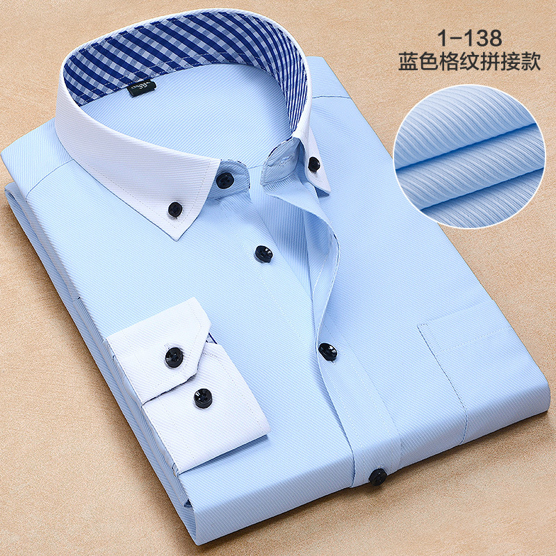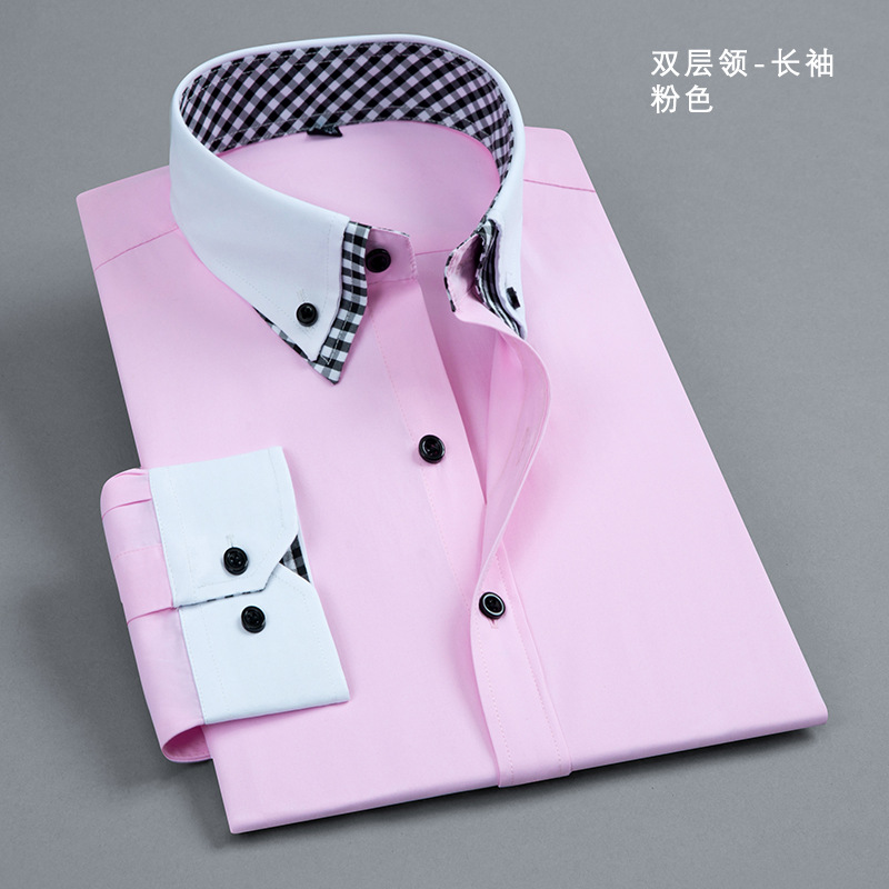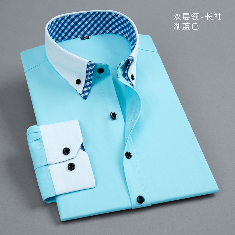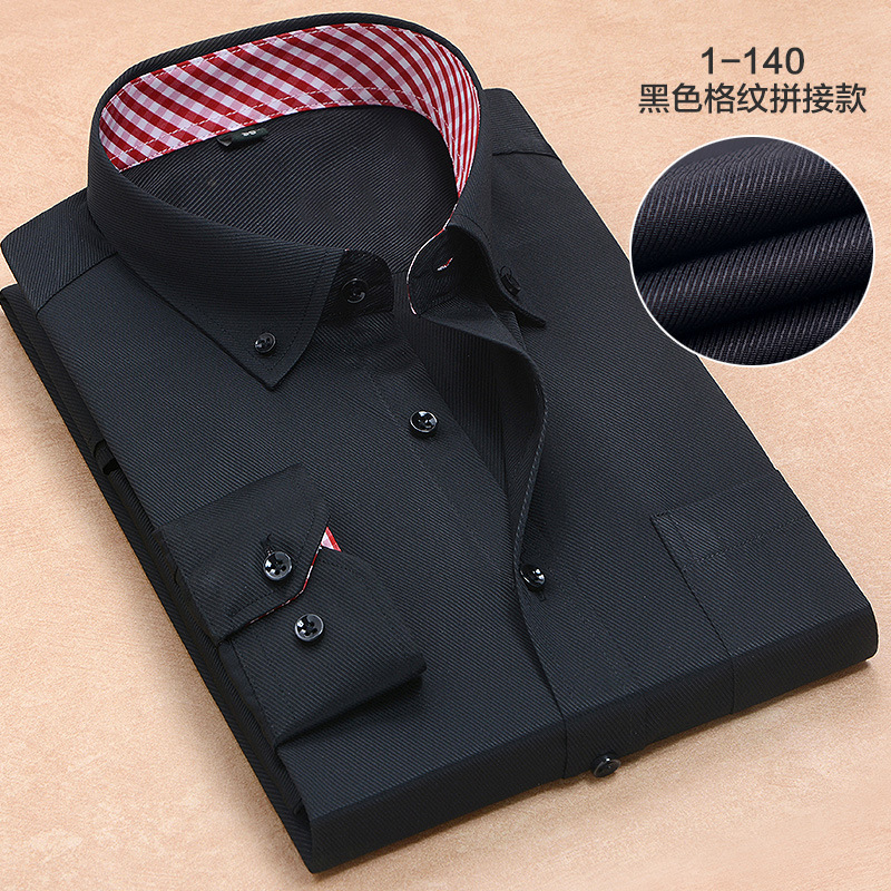 더블 칼라 컬러 블록 셔츠 남성용 긴팔 청소년 캐주얼 일반 셔츠 스타일 먼지 방지 격자 무늬 대비 블랙 버튼 남성복스토어 가기