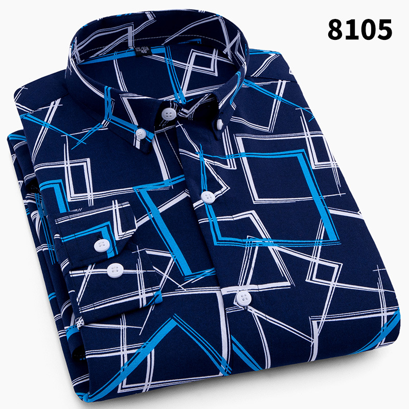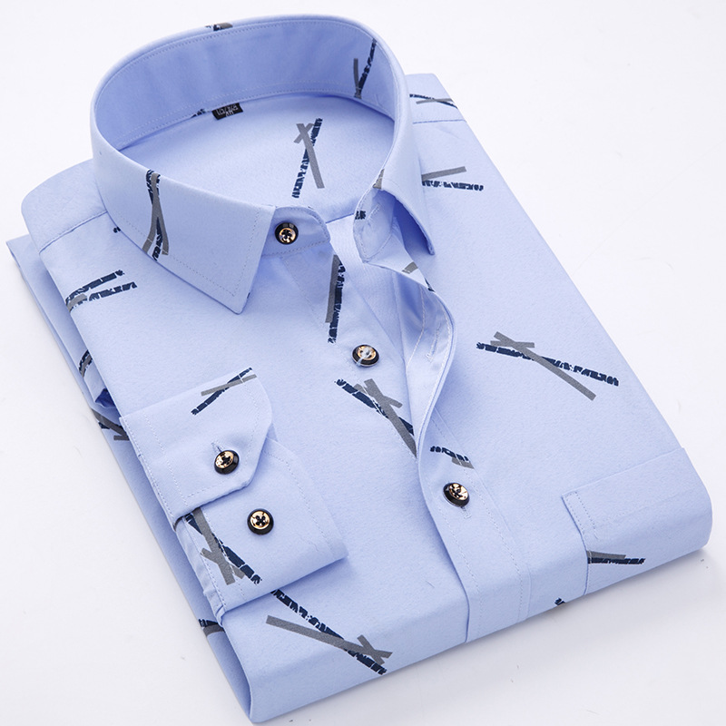 키 큰 셔츠 남성용 긴팔 복숭아 모피 샌딩 프린트 중년 및 노인 셔츠 봄과 가을 캐주얼 비 철 남성 셔츠스토어 가기