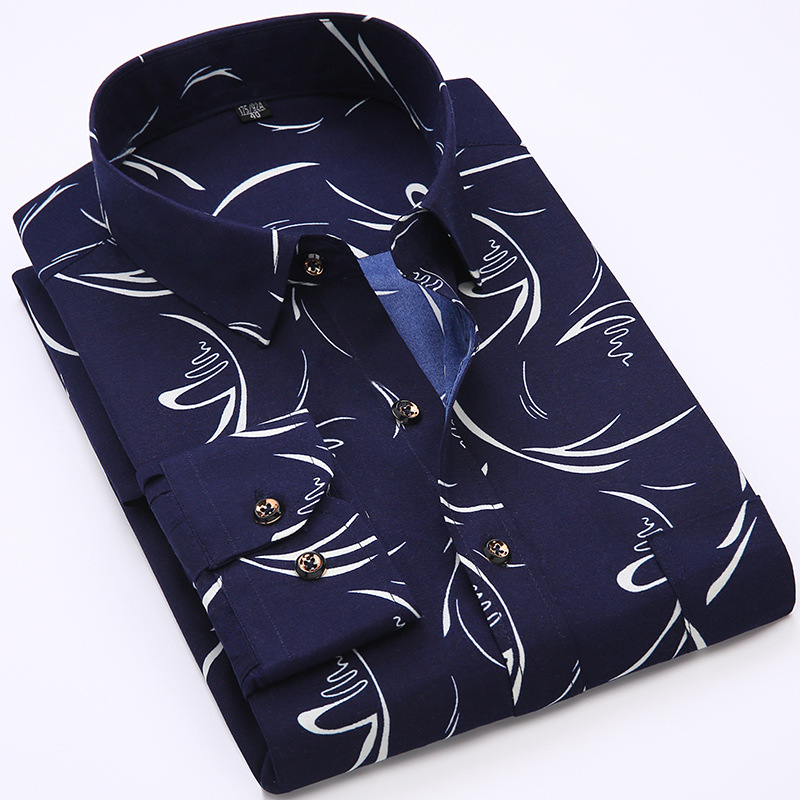 키 큰 셔츠 남성용 긴팔 복숭아 모피 샌딩 프린트 중년 및 노인 셔츠 봄과 가을 캐주얼 비 철 남성 셔츠
