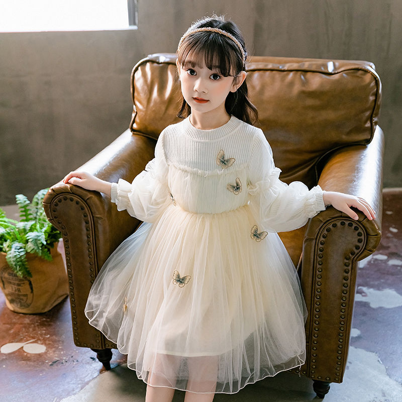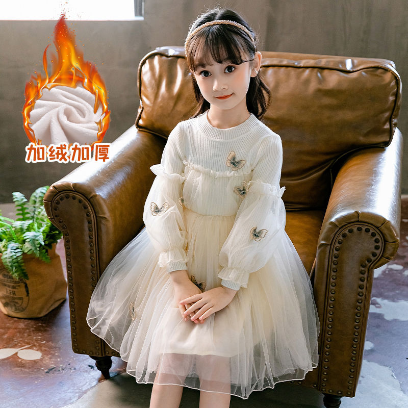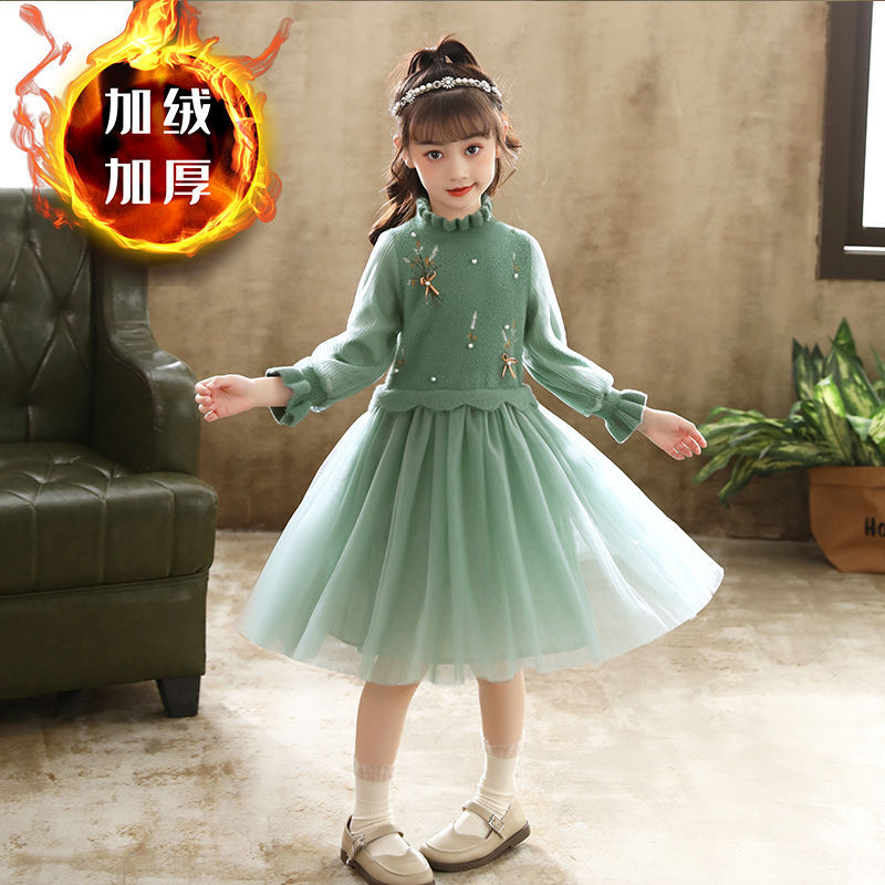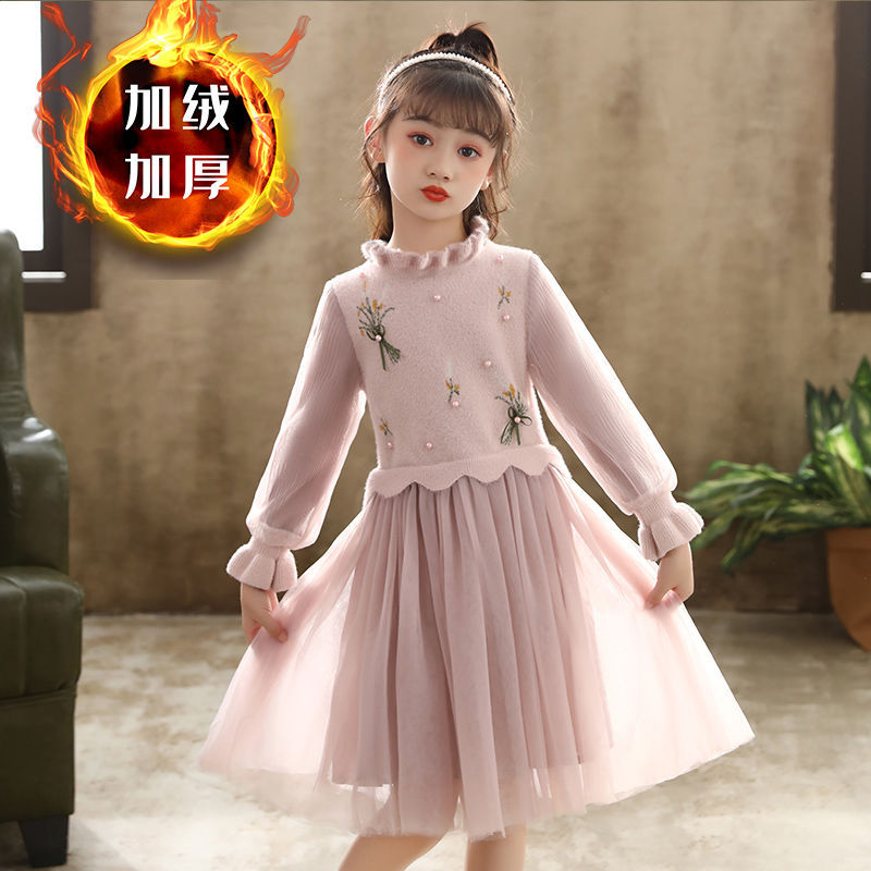 여아 드레스 2024 가을 겨울 신상 벨벳 니트 스커트 한국 스타일 아동복 인터넷 연예인 공주 드레스 봄 스커트