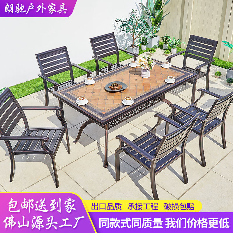 공장 야외 알루미늄 합금 테이블과 의자 야외 안뜰 발코니 레저 가든 빌라 캐스트 알루미늄 식탁 및 의자 방수 테이블과 의자