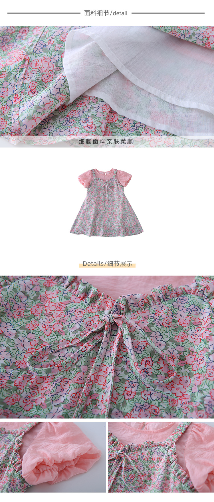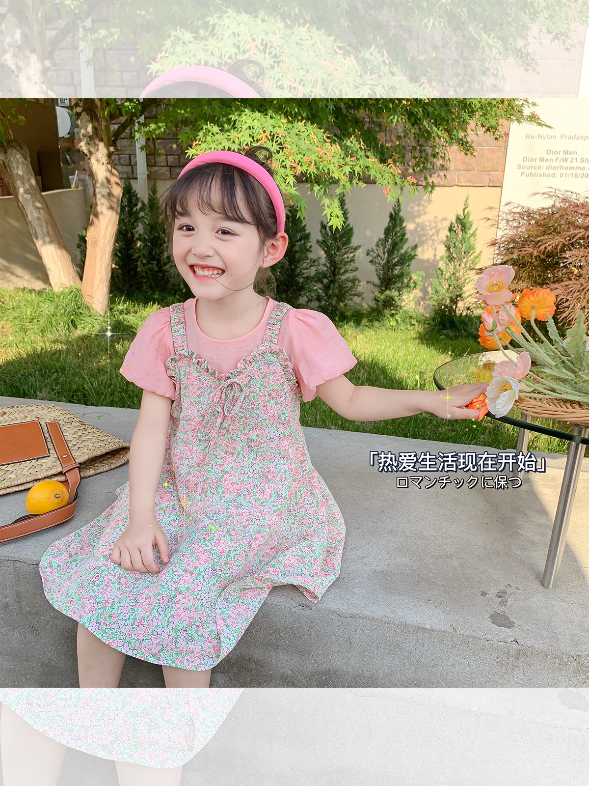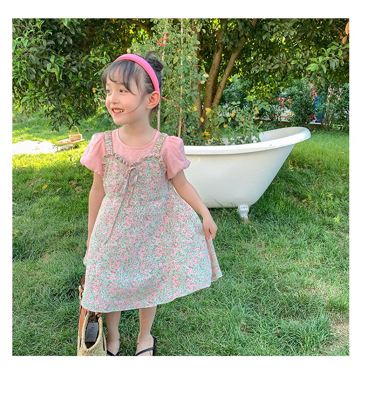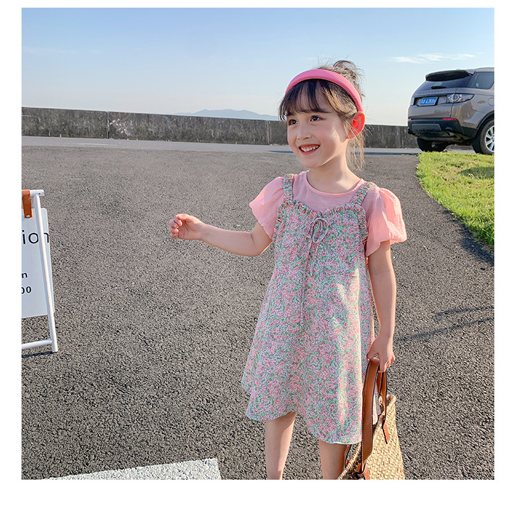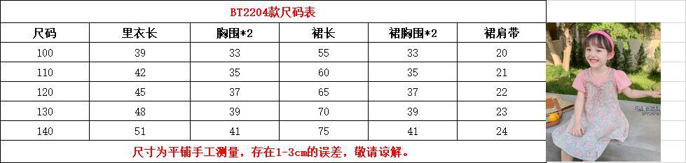 Ancorelala 아동복 여름 신상 여아 꽃무늬 멜빵 원피스와 반팔 상의 투피스 세트
