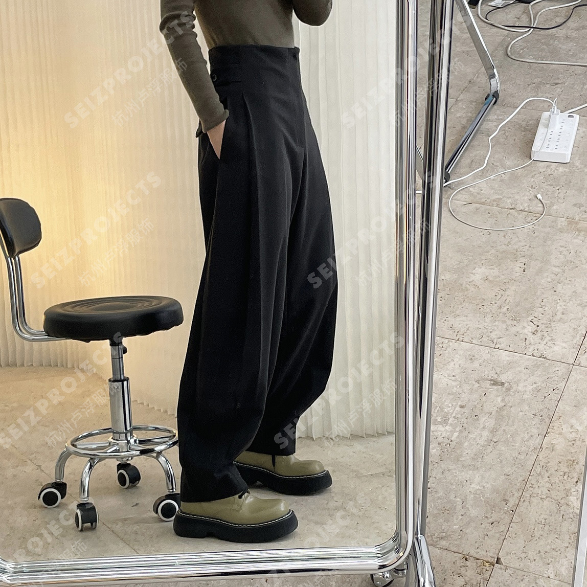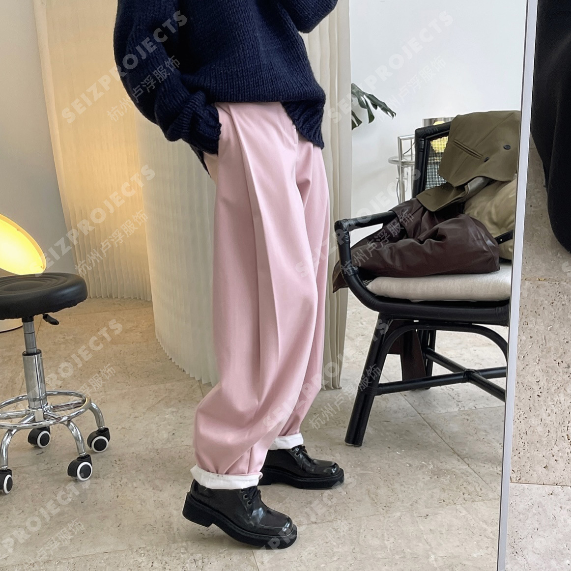 "개인" 겨울 새로운 한국 스타일 하이 웨이스트 와이드 레그 캐주얼 바지 여성용 느슨한 슬림 프로필 다리 바지스토어 가기