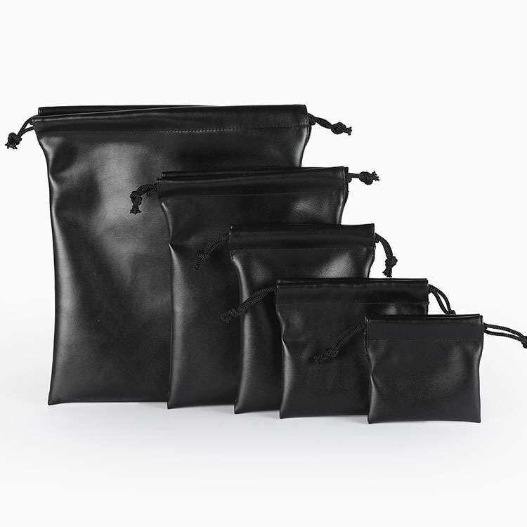 직접 판매 블랙 방수 PU 가죽 대형 이어폰 하네스 드로스트링 백 휴대 전화 데이터 케이블 모바일 파워 쥬얼리 백스토어 가기