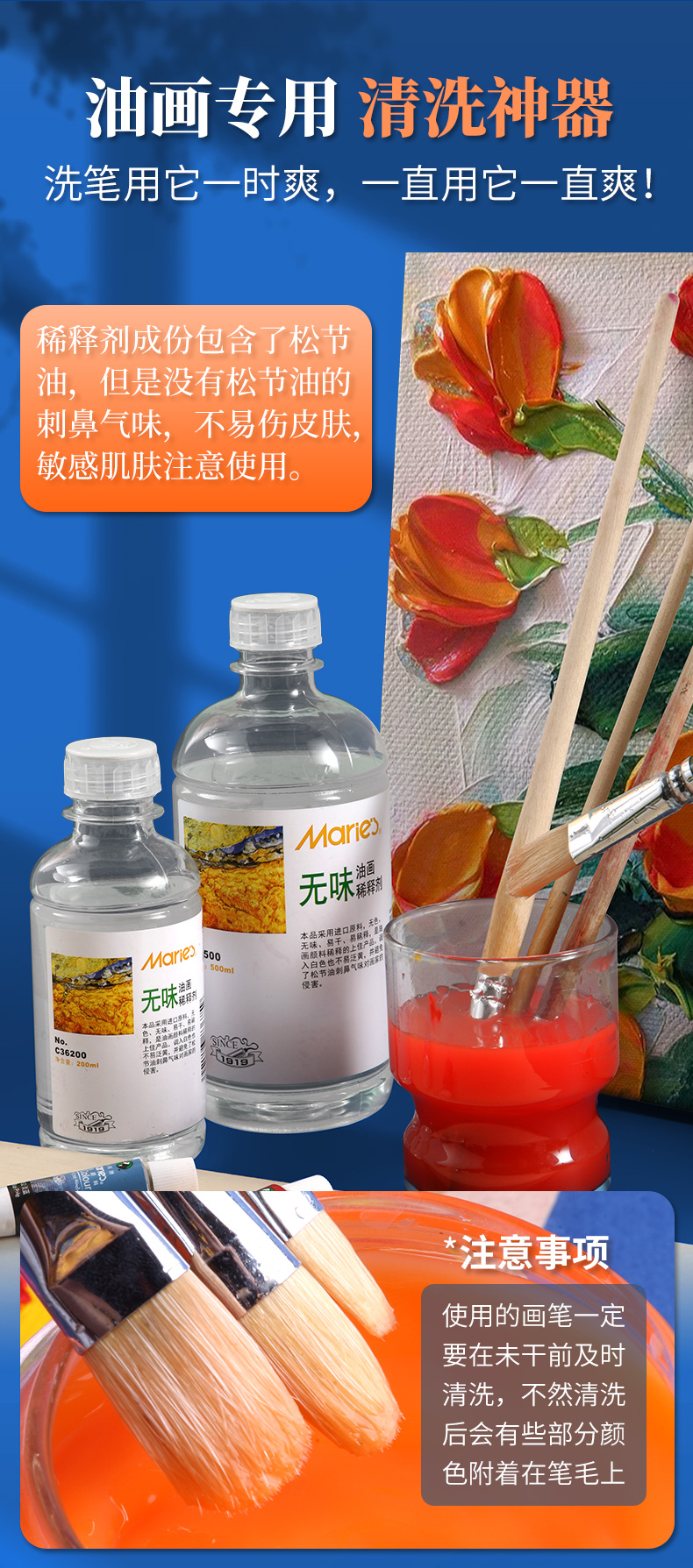 말리 오일 페인트 테레빈유 희석제 무취 광택 유화 재료 펜 세척 액체 글레이징 오일 컬러 오일스토어 가기