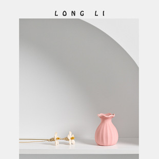 隆利陶瓷花瓶ins简约创意家居干花仿真花迷你小花器摆件陆宝定制