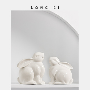 隆利陶瓷兔子白色ins北欧现代可爱家居摆件装饰复活景观跨境货源
