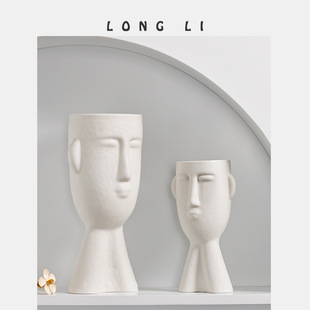 隆利陶瓷花瓶摆件北欧客厅餐桌面电视柜插花干花装饰花器创意人脸