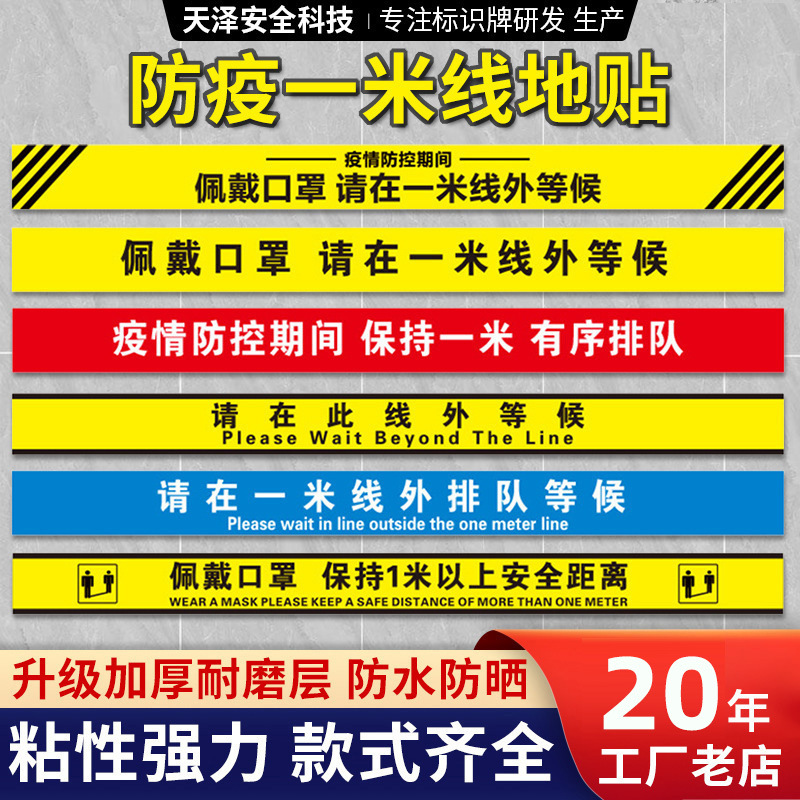 전염병 예방 및 제어를 위해 안전한 거리를 유지하세요. 대기열을 위해 외부에서 1m줄을 이어선 놓았습니다. 경사진 나사형 미끄럼 방지 및 내마모성 1.0m줄 바닥 스티커
