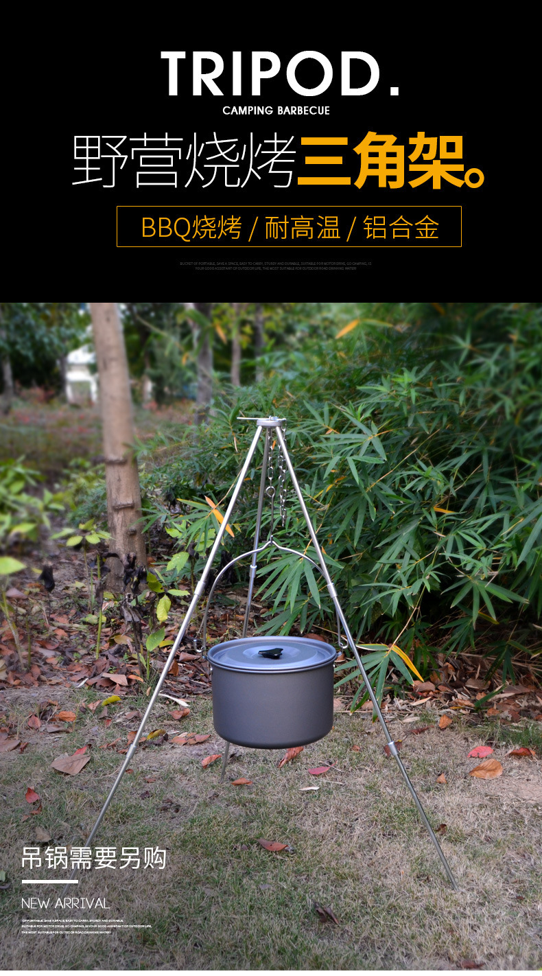 Su Mi 야외 바베큐 접이식 삼각대 그릴 삼각대 캠핑 3 섹션 모닥불 세트 냄비 걸이 볼드스토어 가기