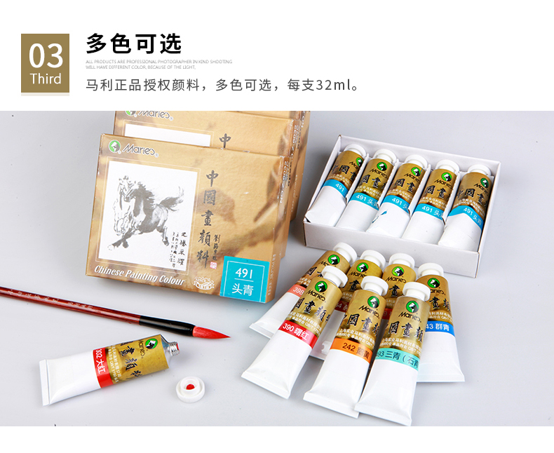 말리 전통 중국화 안료 12ml 박스 32ml 대용량 중국화 잉크 페인팅 싱글 봄 축제 커플 꼼꼼한 브러쉬 가르시니아