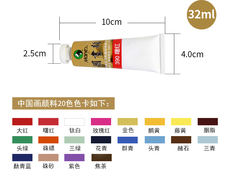 马利国画颜料盒装12/32ml大容量中国画水墨画单支春联工笔藤黄
