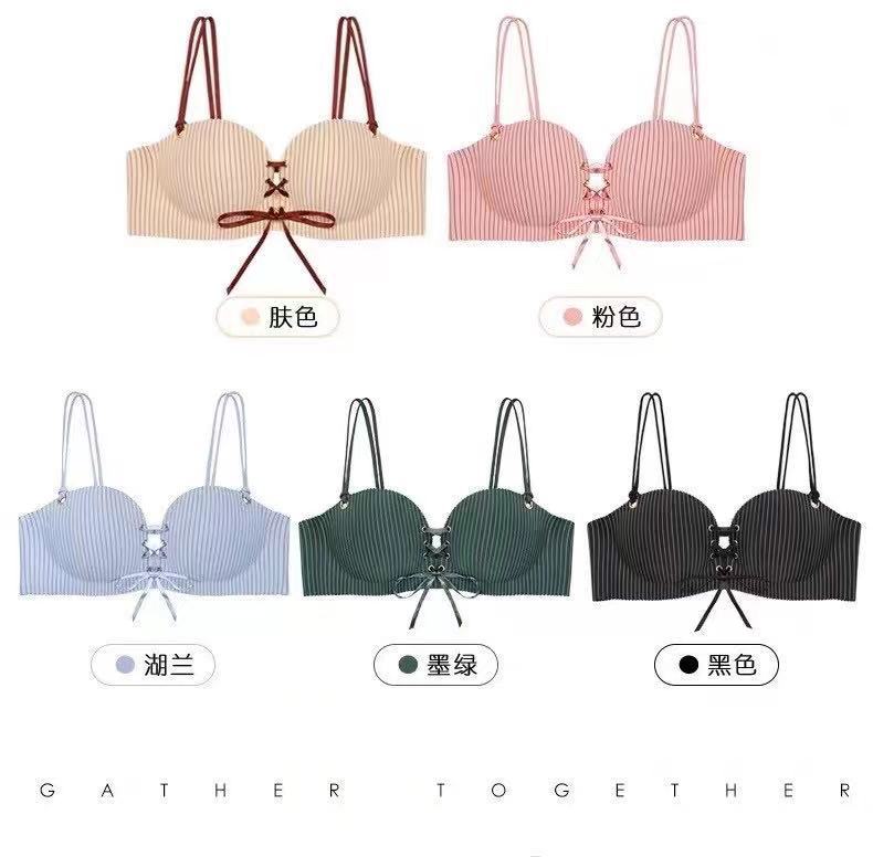 보통배송 바나나 스트라이프 LB 원피스 심플 스트랩 모은 속옷 소프트 노 스틸 링 핸드 브라