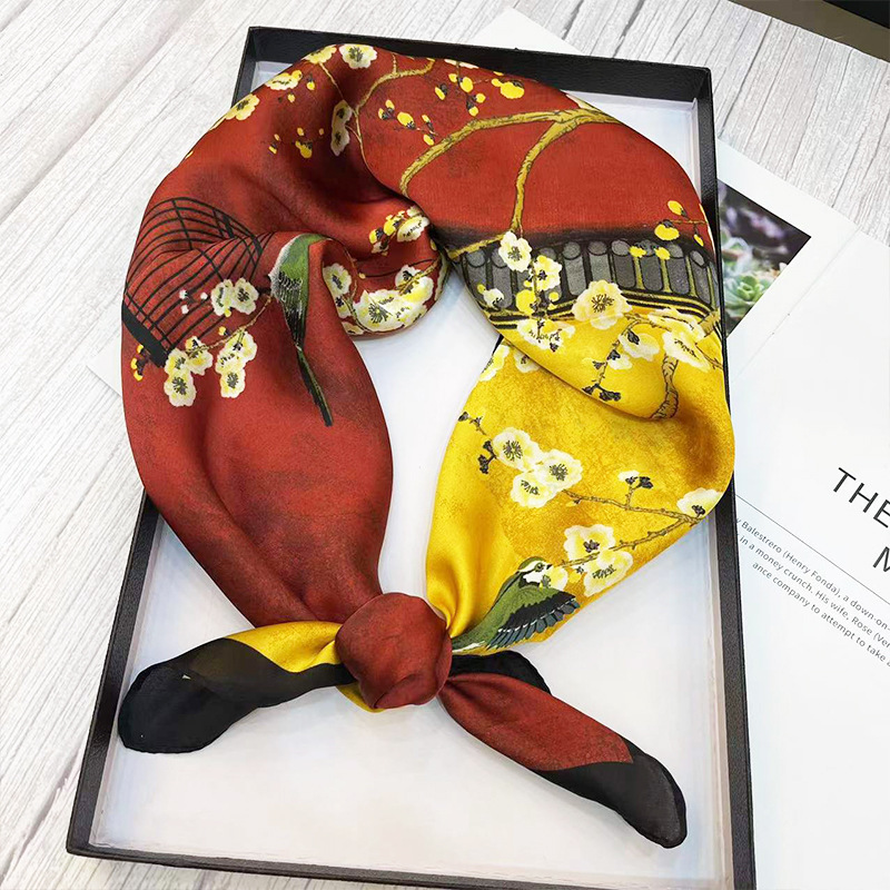 라이브 뉴 레오파드 실크 스카프 에메랄드 실크 스카프 봄과 가을 일본과 한국 스타일 아트 70 작은 사각 스카프