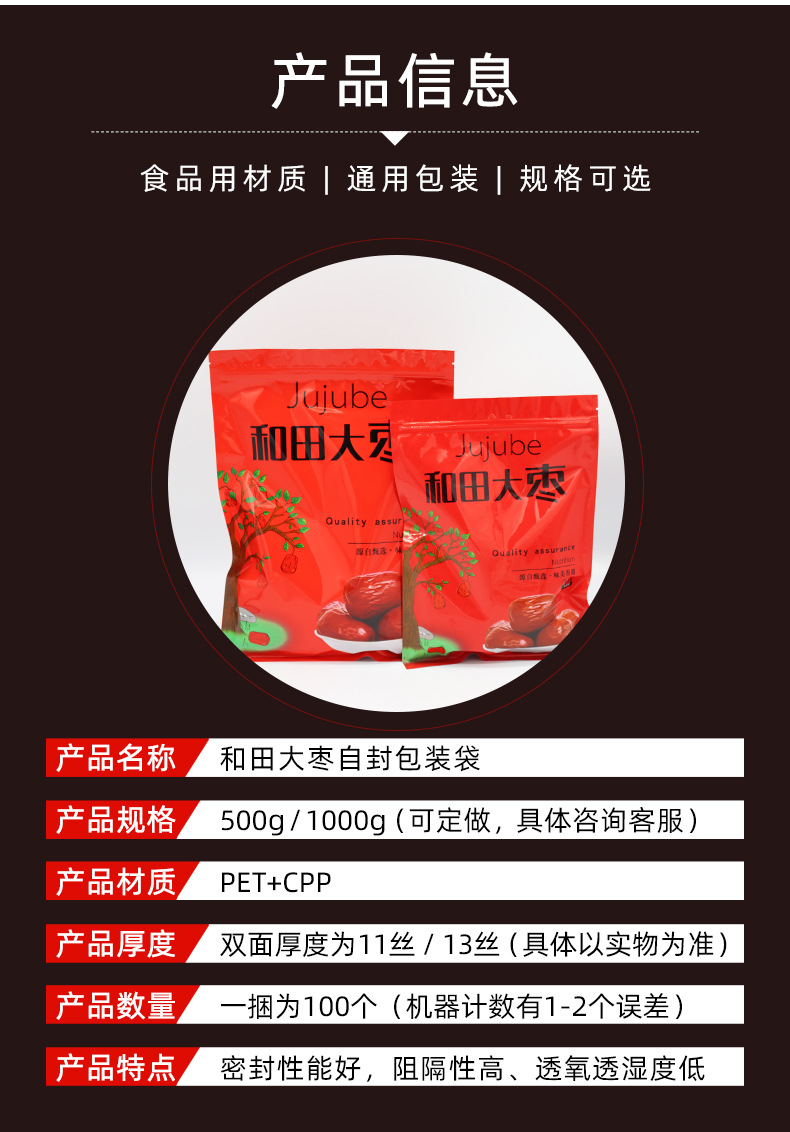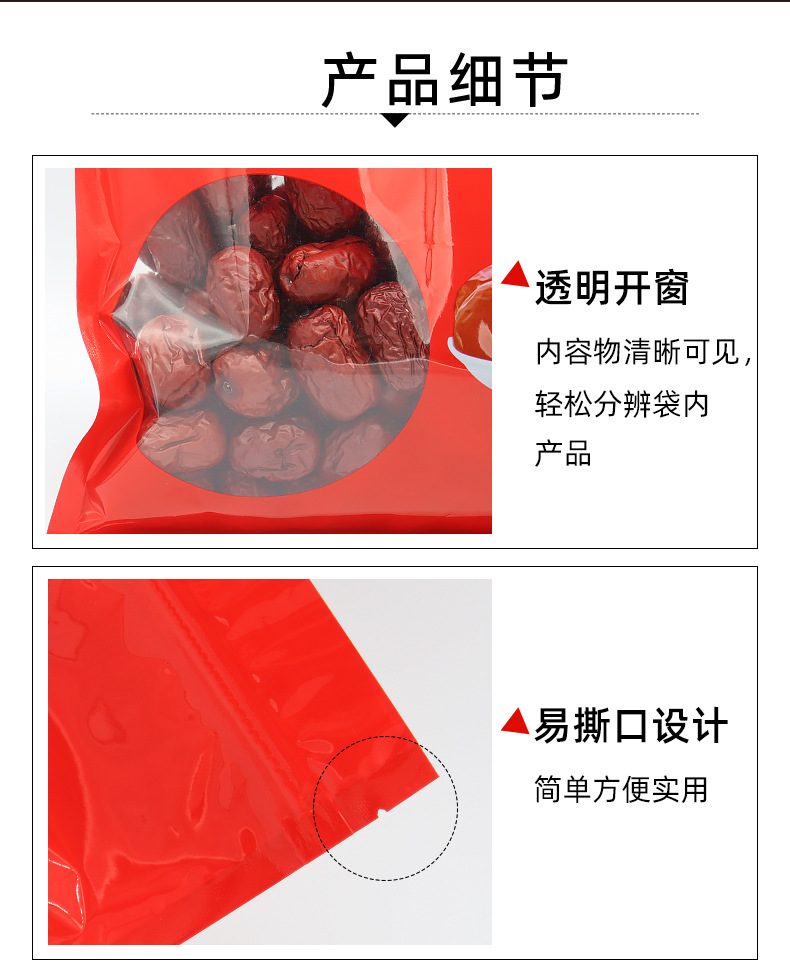 투명한 창 플라스틱 신장 붉은 날짜 Hetian 대추 가방 빨간 날짜 포장 가방 알루미늄 도금 자체 밀봉 식품 포장 가방스토어 가기
