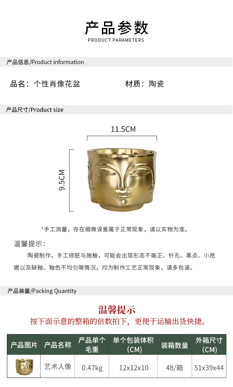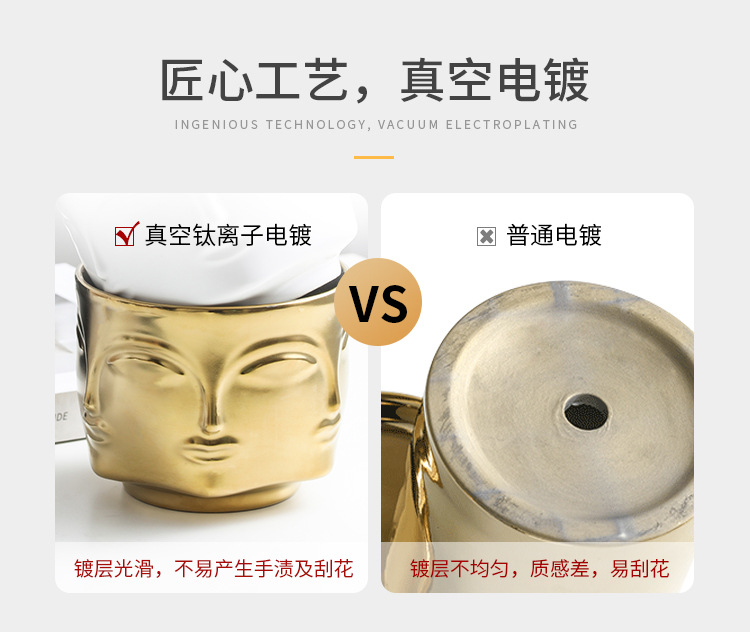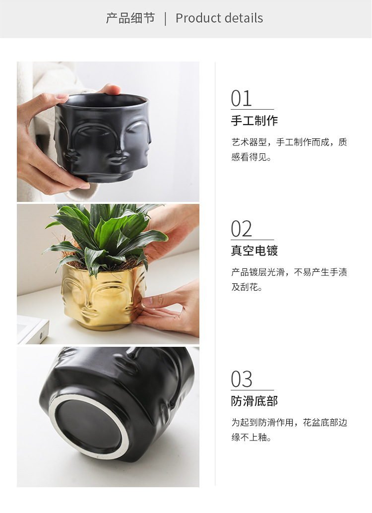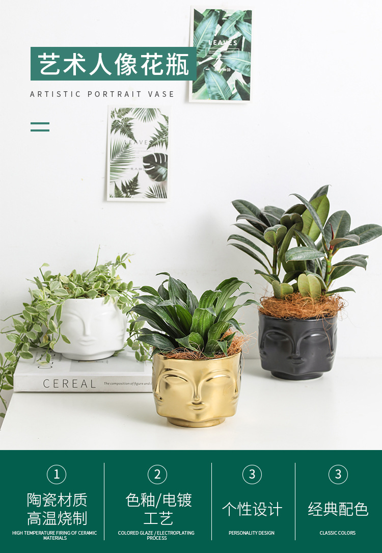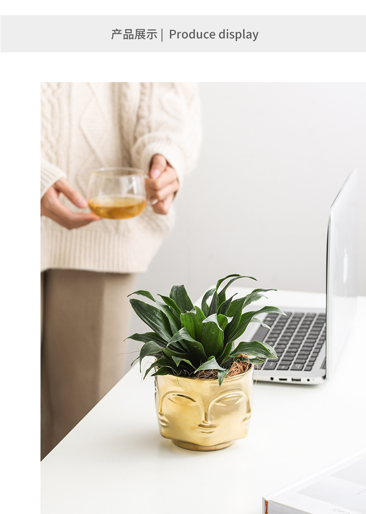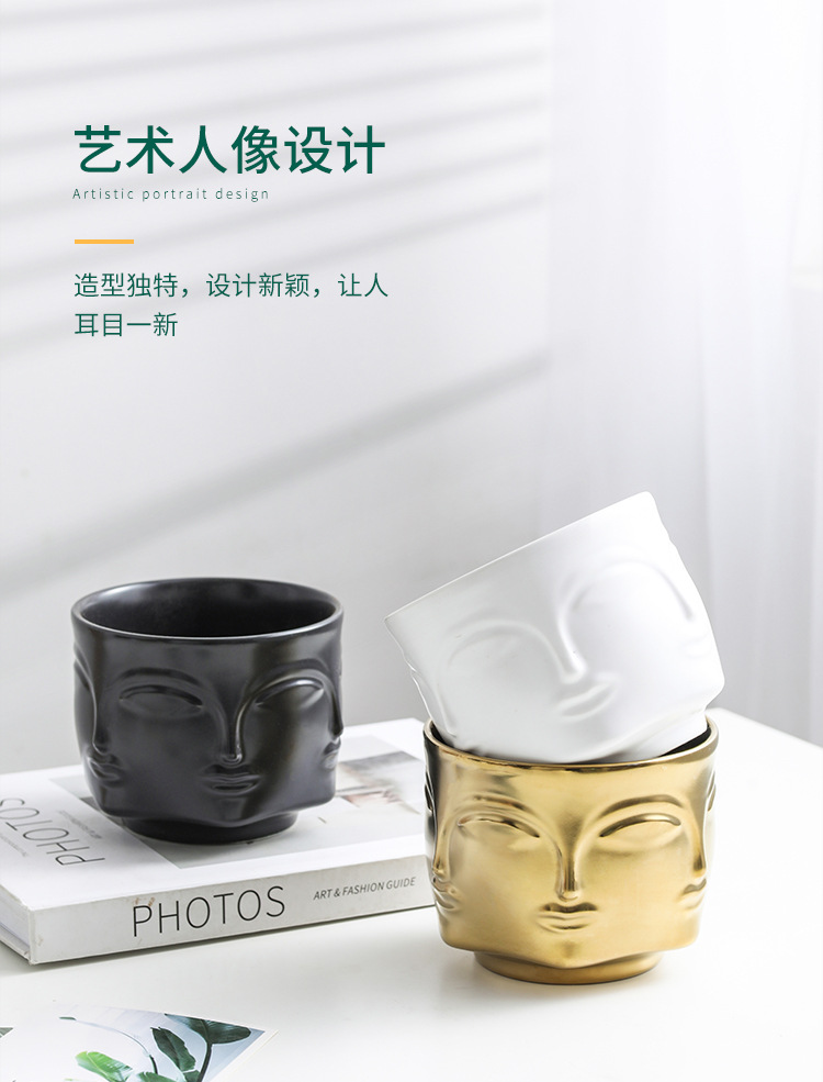 국경을 넘는 얼굴 모양 화분 세라믹 금도금 인물상 꽃병 장식품 아마존 아트 화분