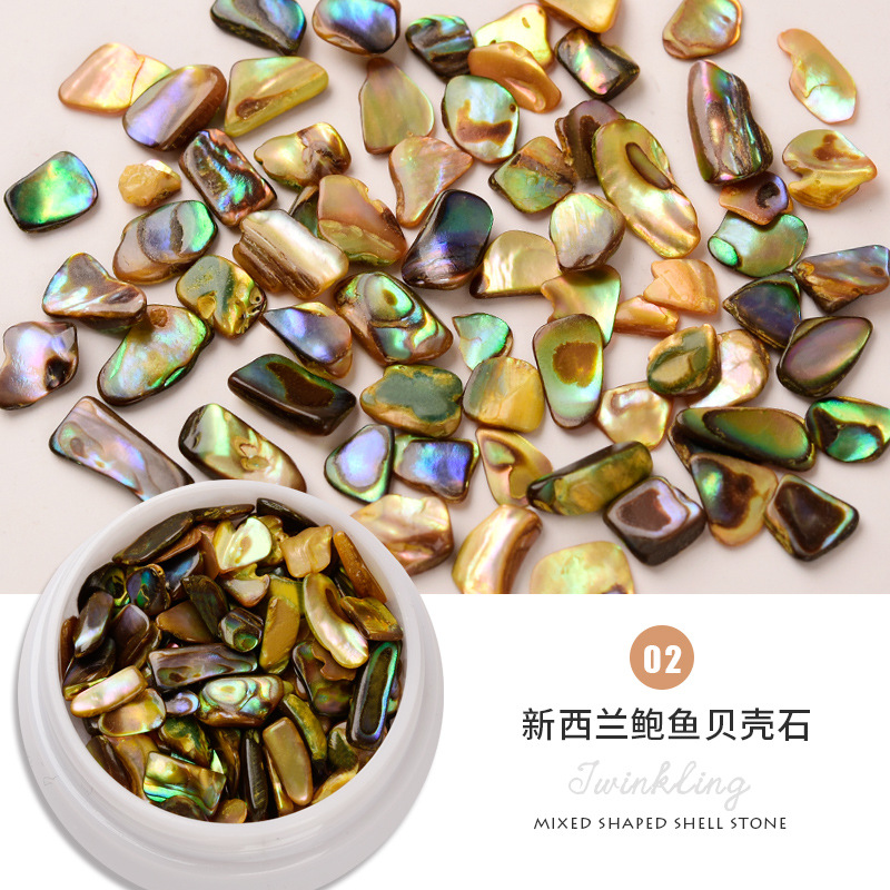 도매 그물 레드 네일 아트 천연 전복 조개 돌 색상 광택 매직 오로라 네일 장식 액세서리 세트 박스스토어 가기