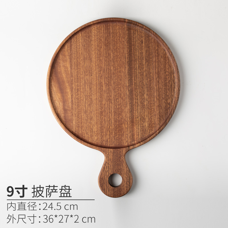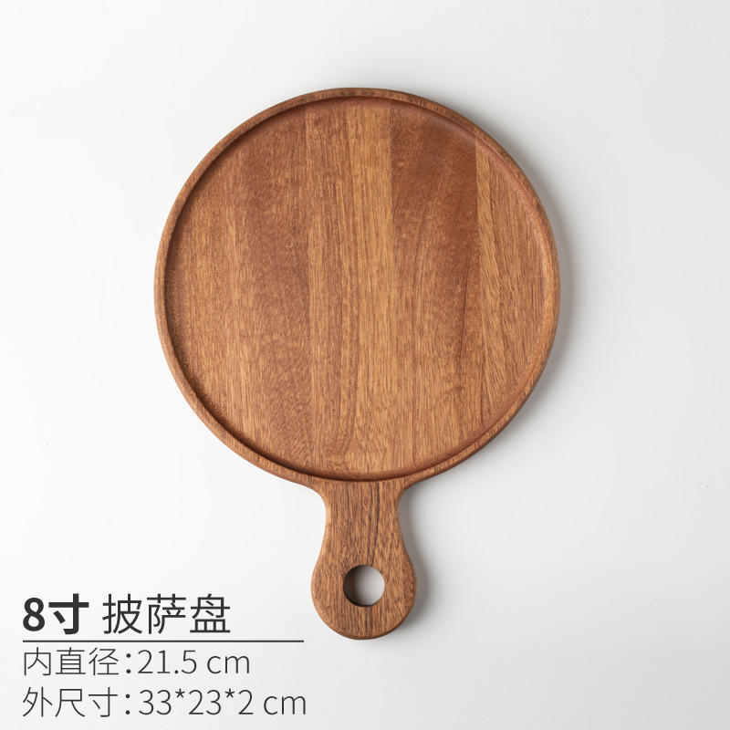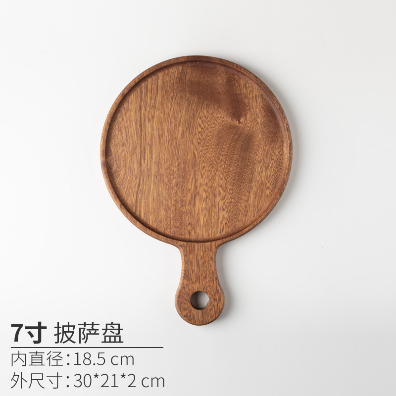 단단한 나무 둥근 피자 판 에보니 피자 접시 손잡이 과일 빵 보드 케이크 트레이 베이킹 식기스토어 가기