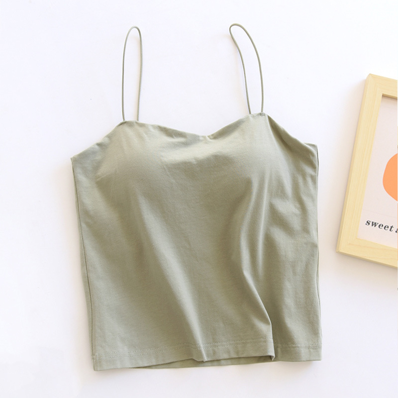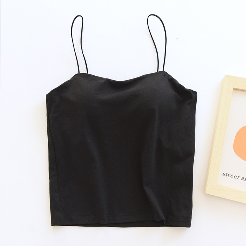 가슴 패드가있는 작은 캐미솔 여성용 내부 조끼 아름다운 등 디자인 틈새 블랙 베이스 탑 여름 끈이없는 겉옷