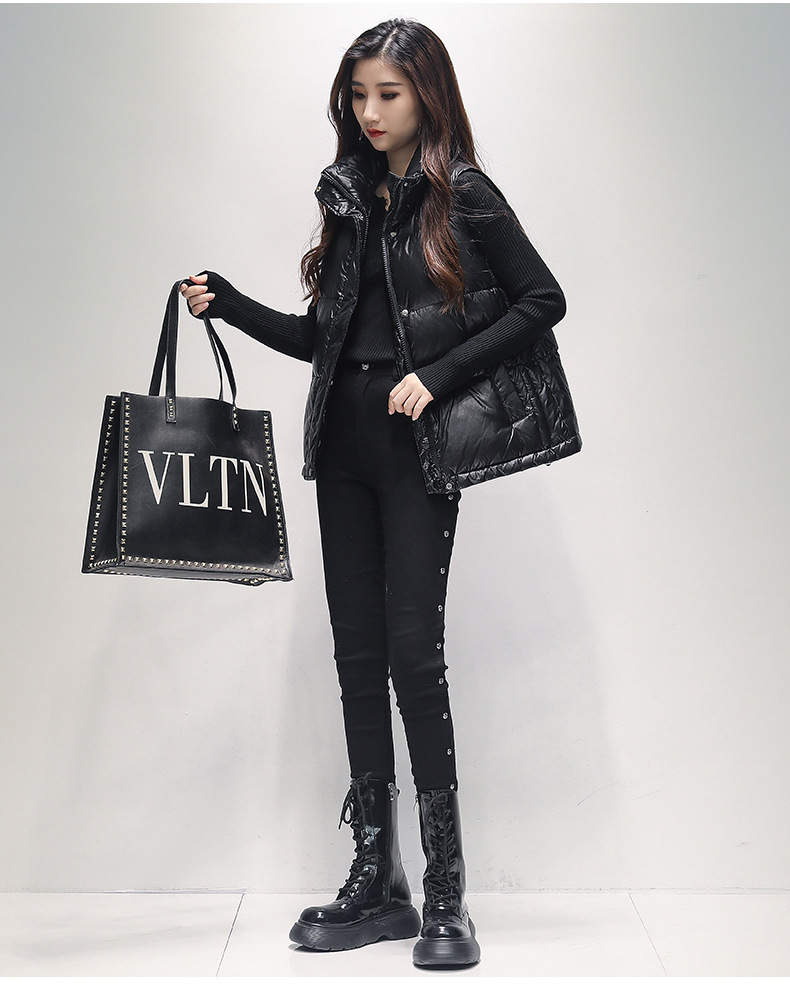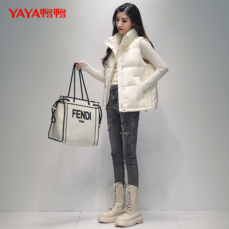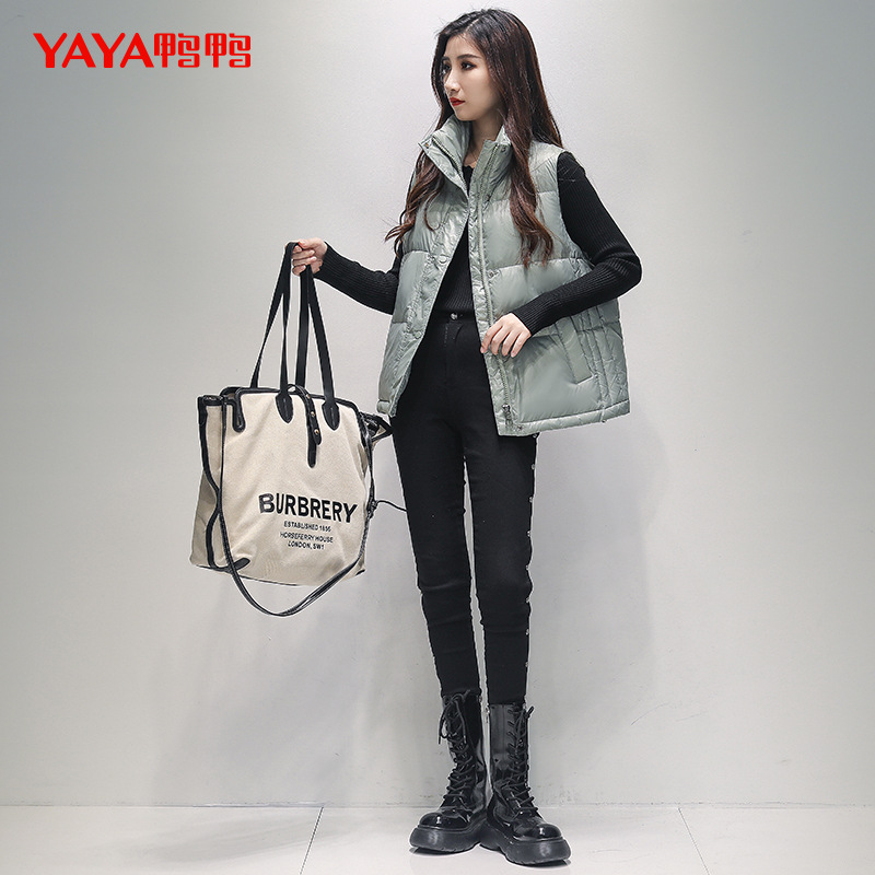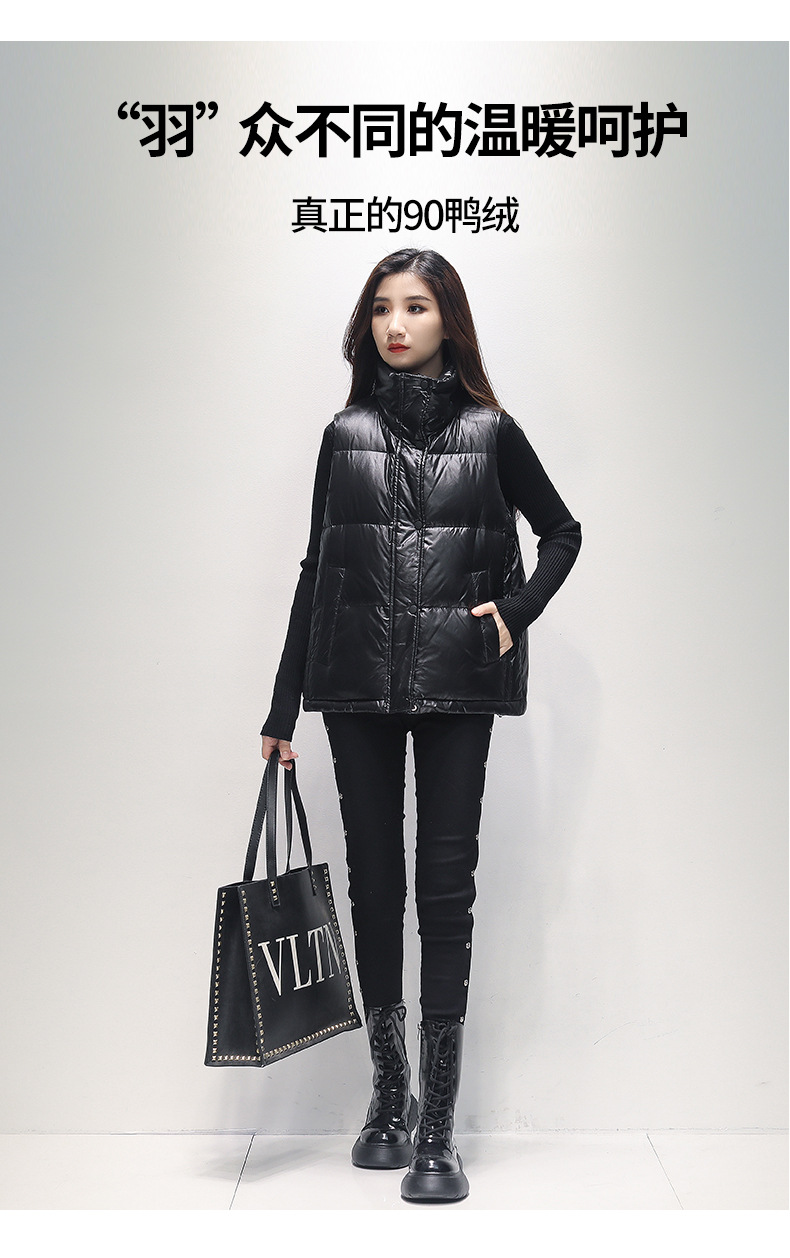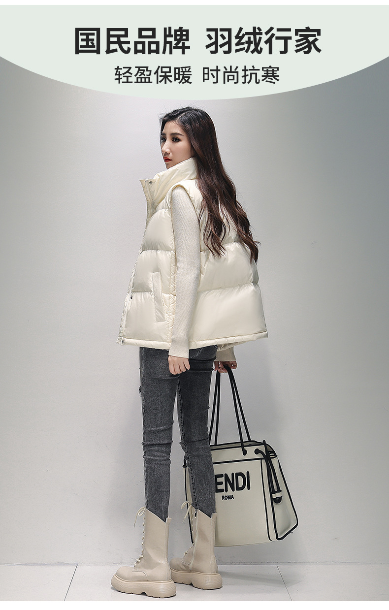 덕 다운 재킷 조끼 여성의 2021 겨울 새로운 경량 짧은 칼라 한국 캐주얼 조끼 C