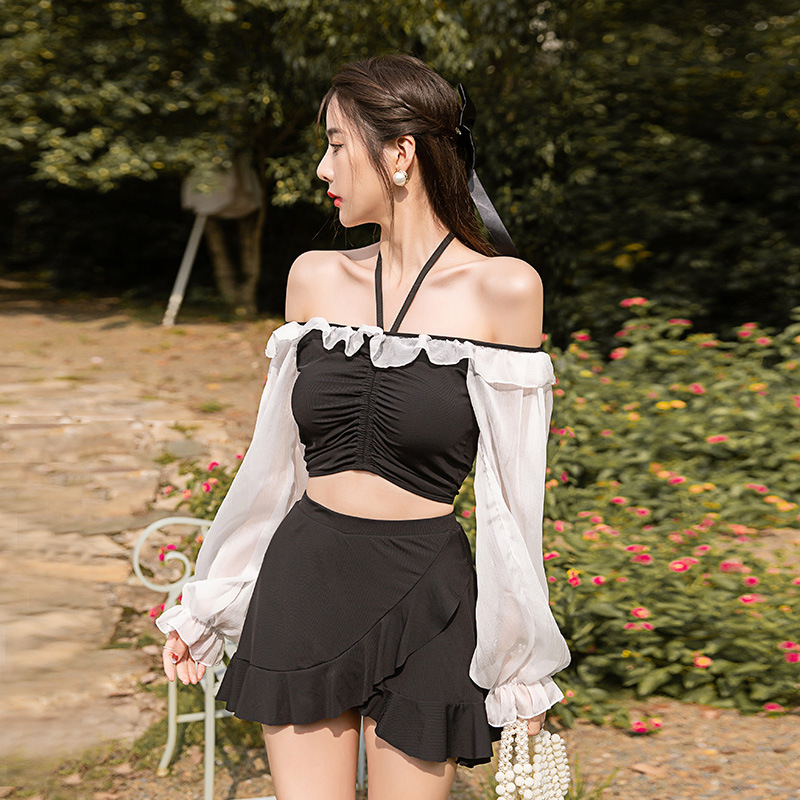 온천 휴일 수영복 도매 스플릿 스커트 사각 원피스 보수적 인 쉬폰 긴 소매 수영복 여성용스토어 가기