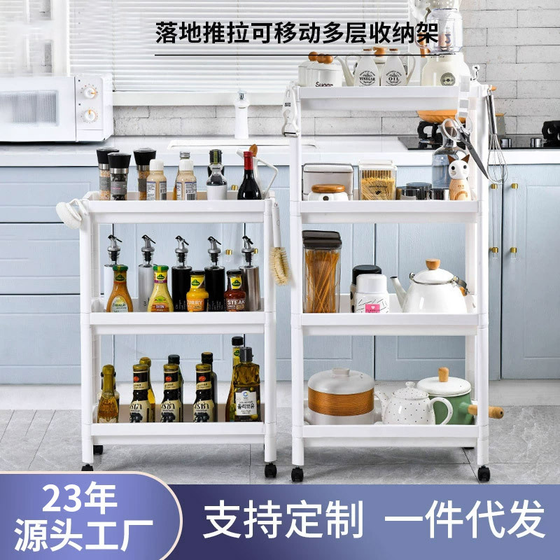 주방 틈새 확장형 수납 선반 플라스틱 욕실 화장실 바닥형 슬라이딩 이동식 다층 수납 선반 도매