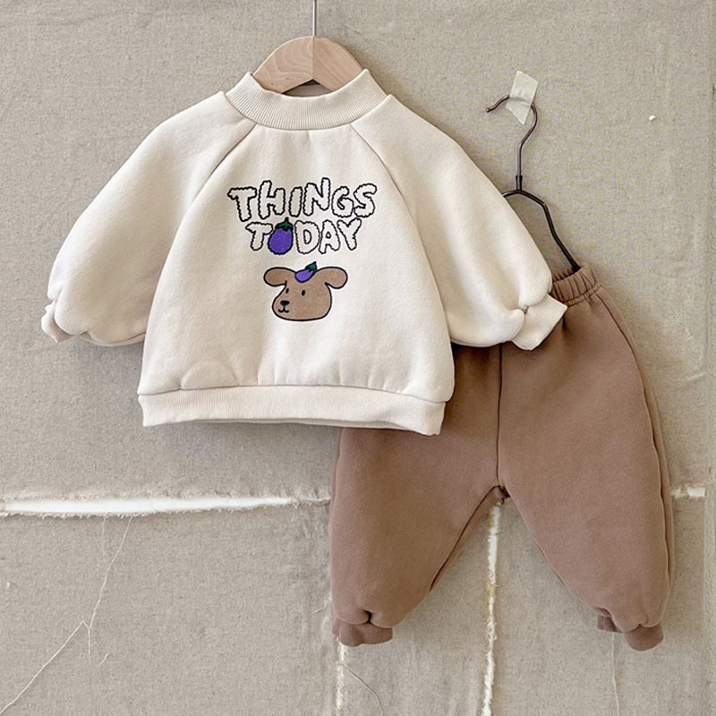 아기 유아의 만화 봄과 가을 스웨트 셔츠 귀여운 외국 스타일 편지 느슨한 캐주얼 편안한 세트
