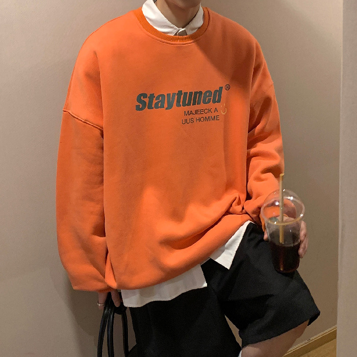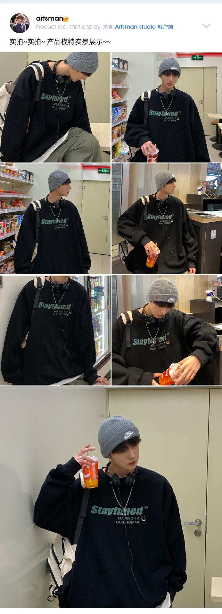 가을과 겨울 기모 스웨터 남자의 유행 뚱뚱한 남자의 느슨한 크루넥 티셔츠베이스 셔츠 플러스 뚱뚱한 커플의 긴 소매 탑스토어 가기
