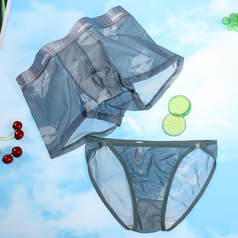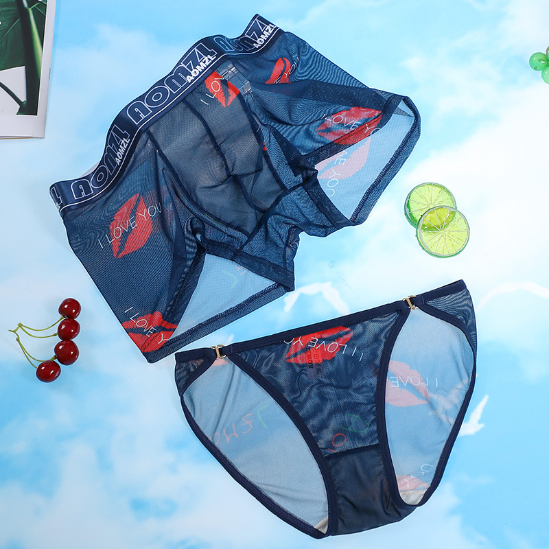 오만한 사랑 아이스 실크 섹시한 커플 거즈 속옷 통기성 여성용 팬티 미드 웨이스트 남성용 복서 팬티