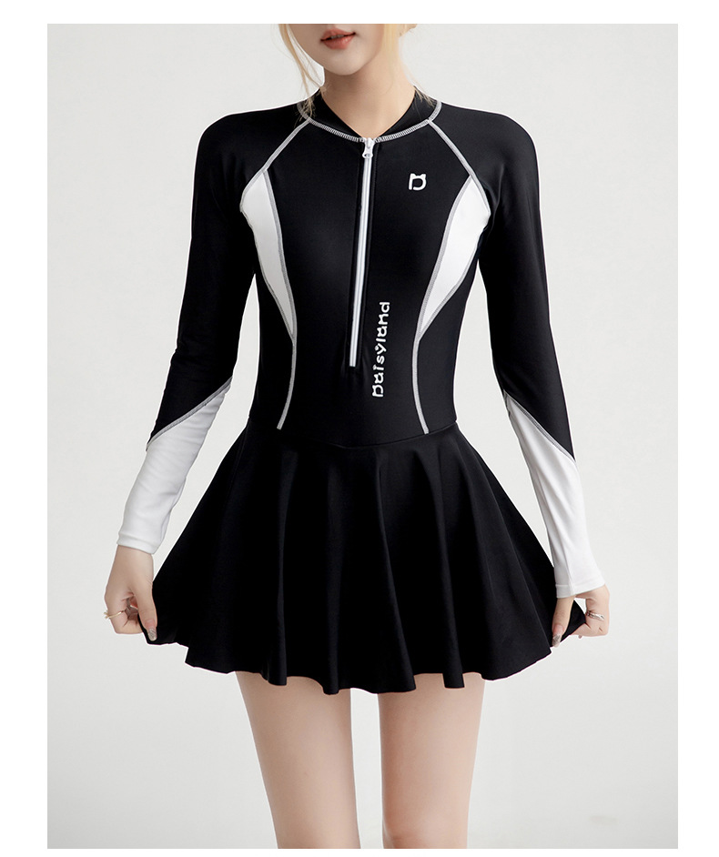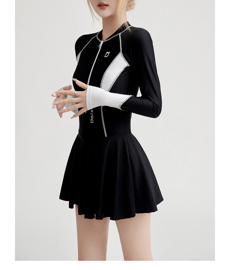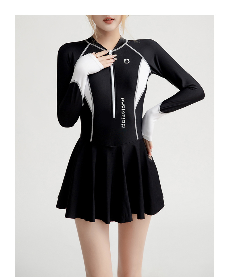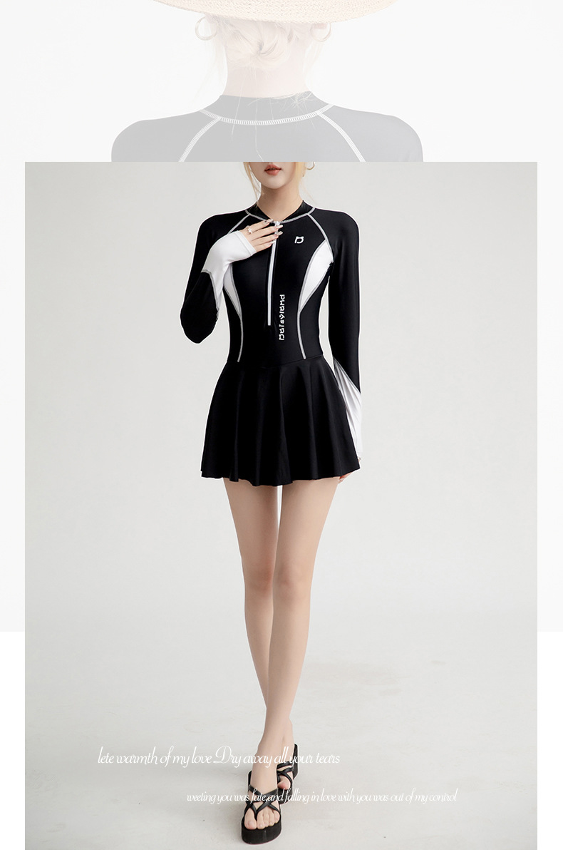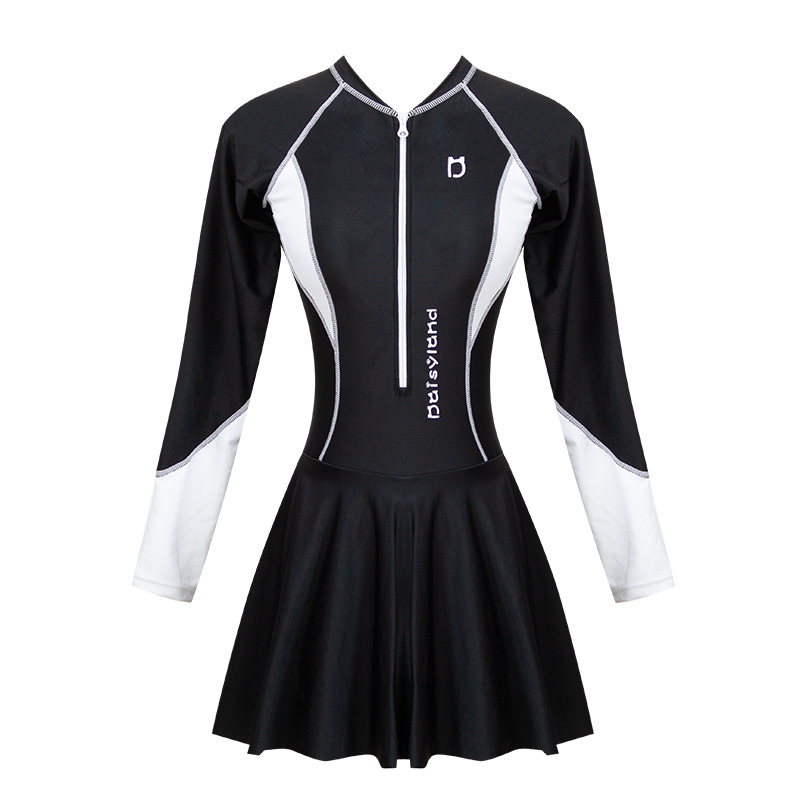 새로운 스포츠 훈련 배꼽 슬리밍 보수적 인 평면 각도 뜨거운 봄 태양 보호 긴 소매 플러스 사이즈 수영 세트 여자의 치마 원피스