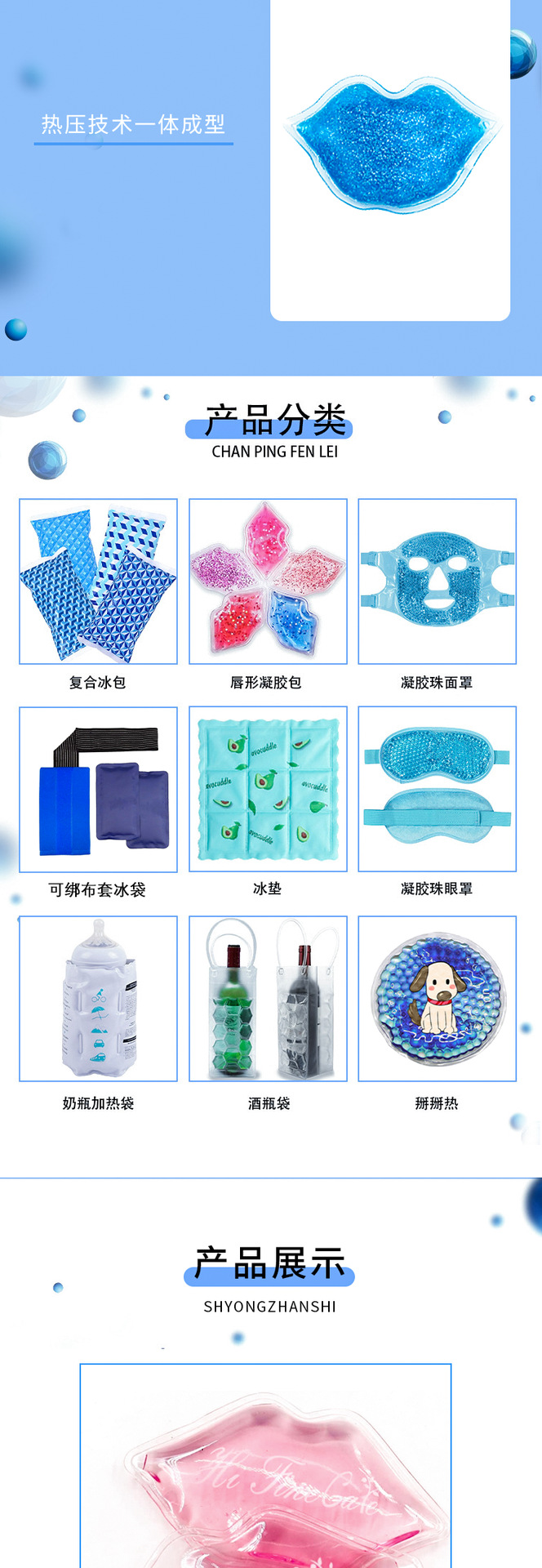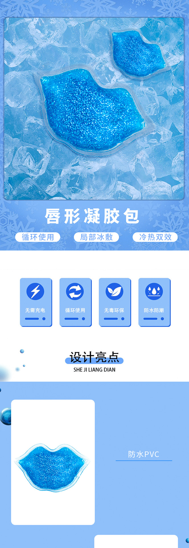 국경 간 공급 뷰티 케어 PVC 원형 비즈 젤 냉찜질팩 입술 모양 다색 젤 아이스 패치 입술 모양 무역스토어 가기