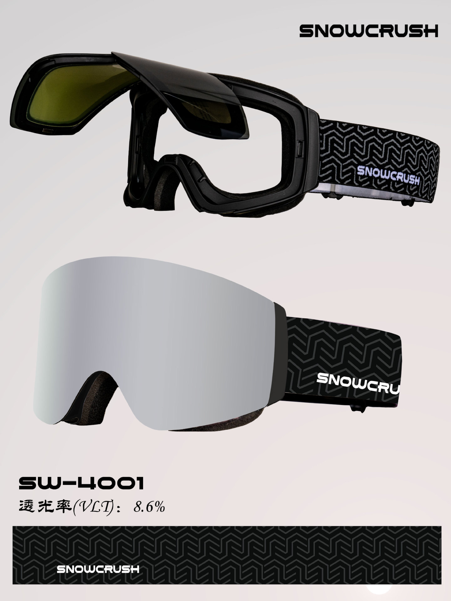 스노우크러쉬 플립탑 원통형 자석 스키 고글 이중 김서림 방지 남녀공용 근시용