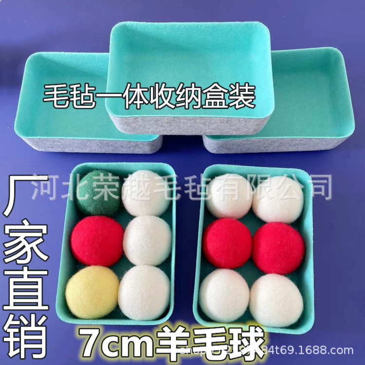 도매용 펠트 일체형 수납함 건조용 울볼 7cm 6개입 울 건조볼 컬러풀한 원형볼